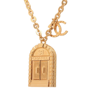 Chanel 31 Rue Cambon Door Pendant Necklace Gold Tone CC Logo Charm Vintage