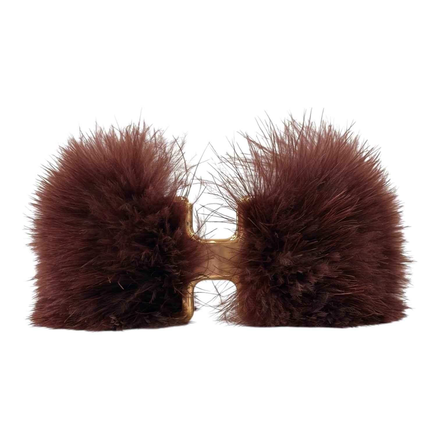 A standout Hermès piece, this Olympe Faubourg Circus Feather Cuff Bracelet combines bold design with refined craftsmanship. The cuff features rich brown feather detailing that creates soft texture and volume, contrasted by structured gold tone hardware for a striking finish.