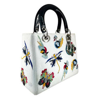 Christian Dior White Smooth Calfskin Embroidered Medium Lady Dior Bag
