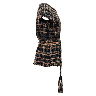 Chanel Black & Gold Tweed Short-Sleeve Belted Jacket with Fringe Trim