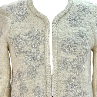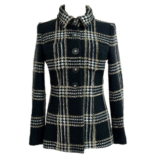 Chanel Black & Silver Chevron Knit Ruffle Hem Coat With High Collar