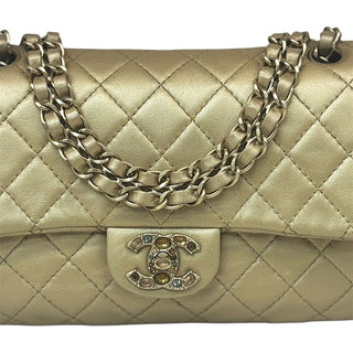 Chanel Gold Metallic Lambskin Quilted Medium Precious Jewel Single Flap Bag