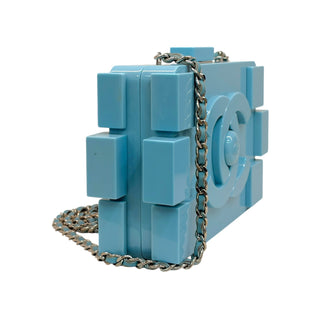 Chanel Light Baby Blue Plexiglass Supermarket Boy Brick Lego Minaudière Clutch With Silver Hardware