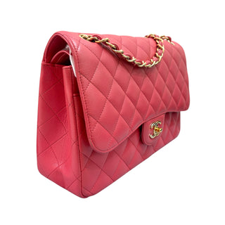 Chanel Coral Pink Caviar Quilted Jumbo Double Flap Bag with Gold Hardware