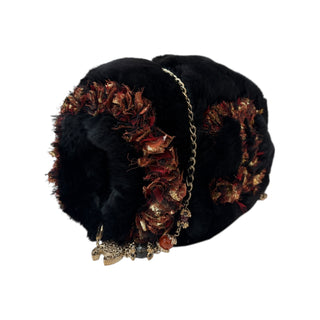 Chanel Black Rabbit Fur & Tweed CC Logo Hand Muff Crossbody Bag With Gold CC Chain