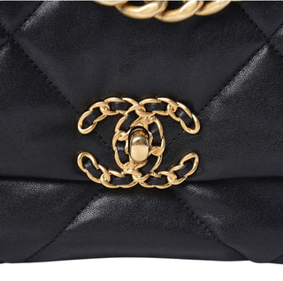 Chanel Black Caviar Quilted Leather Turn-Lock Front Pocket Shoulder Bag With Gold Hardware