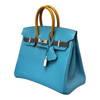 Hermes Birkin 25 Tricolor Blue Jean/Ecorce/Sesame Epsom Leather With Palladium Hardware