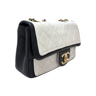 Chanel Black & White Quilted Small Graphic Flap Bag With Gold Hardware