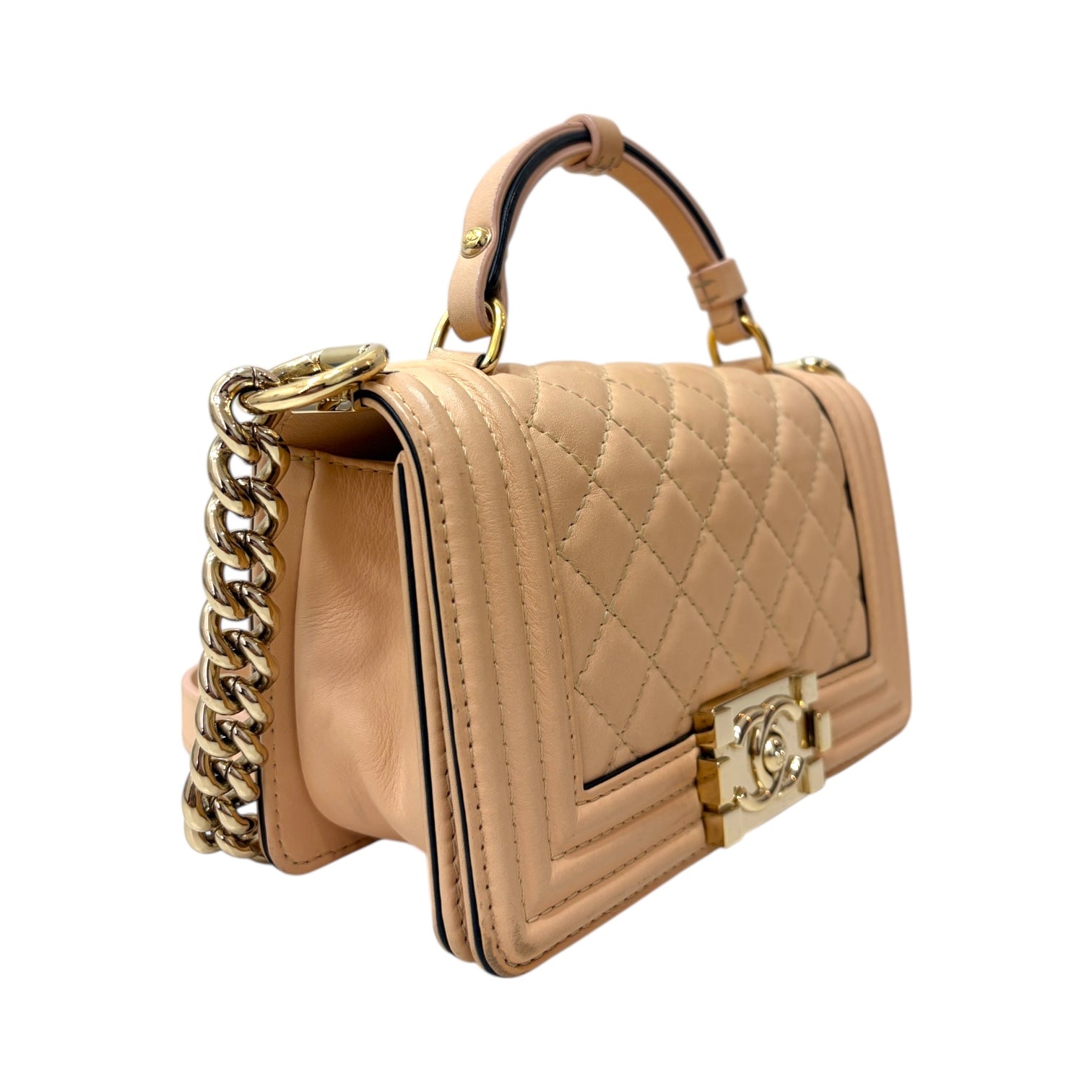 Chanel Beige Lambskin Mini Boy Bag With Gold Hardware