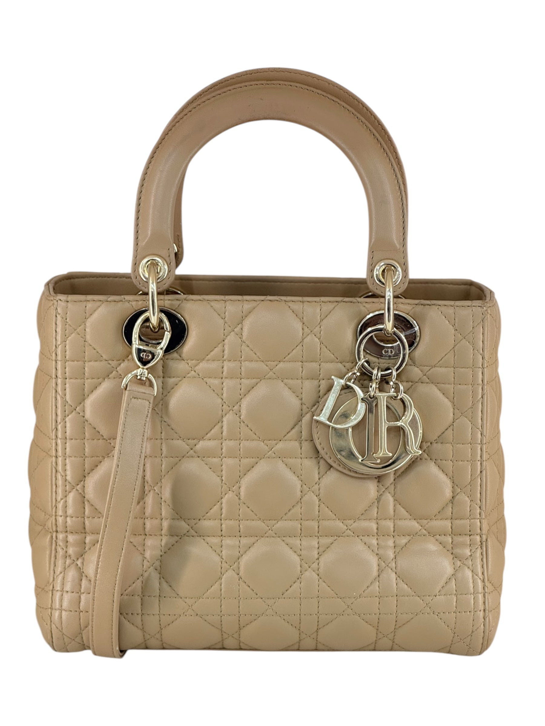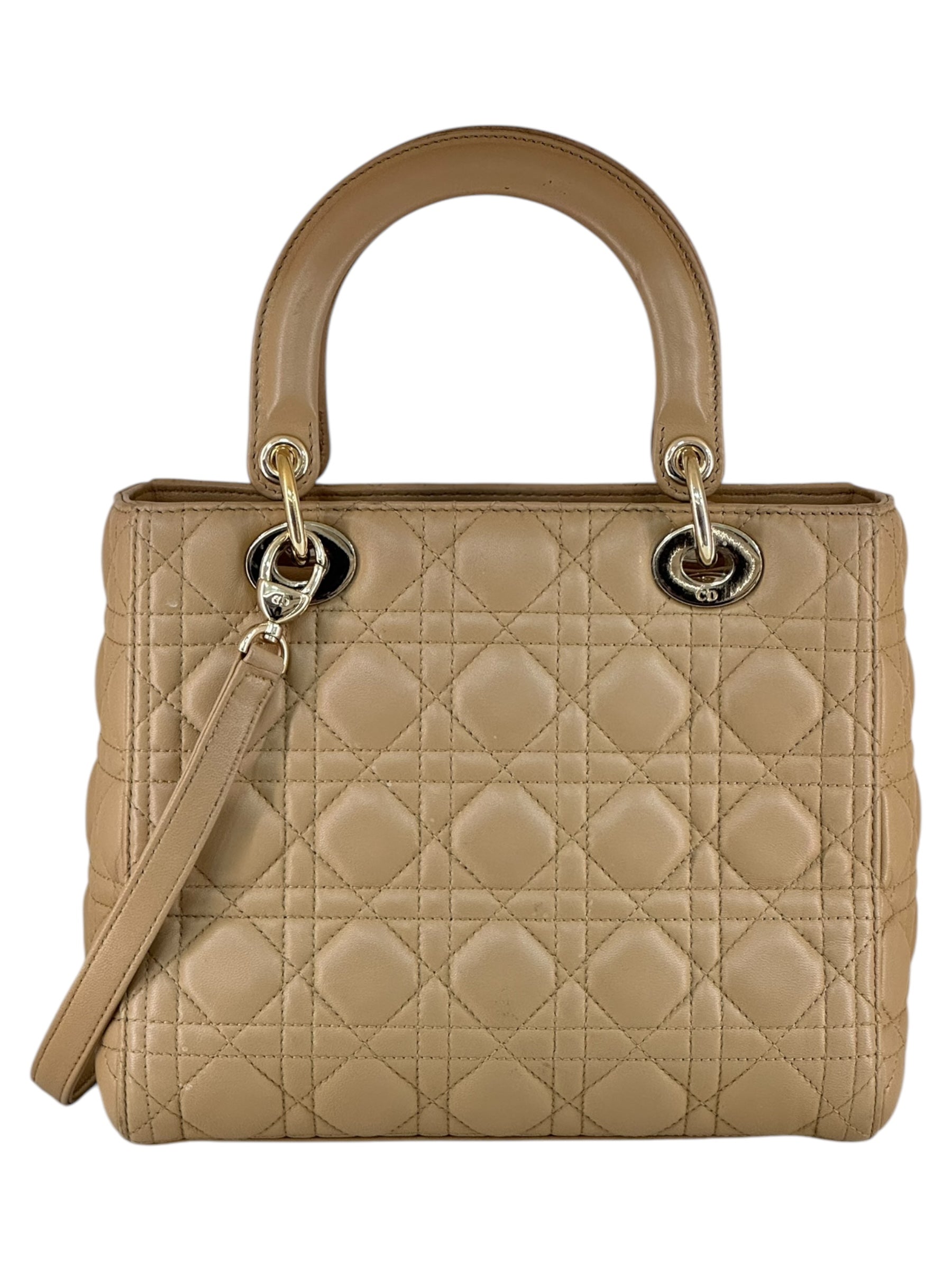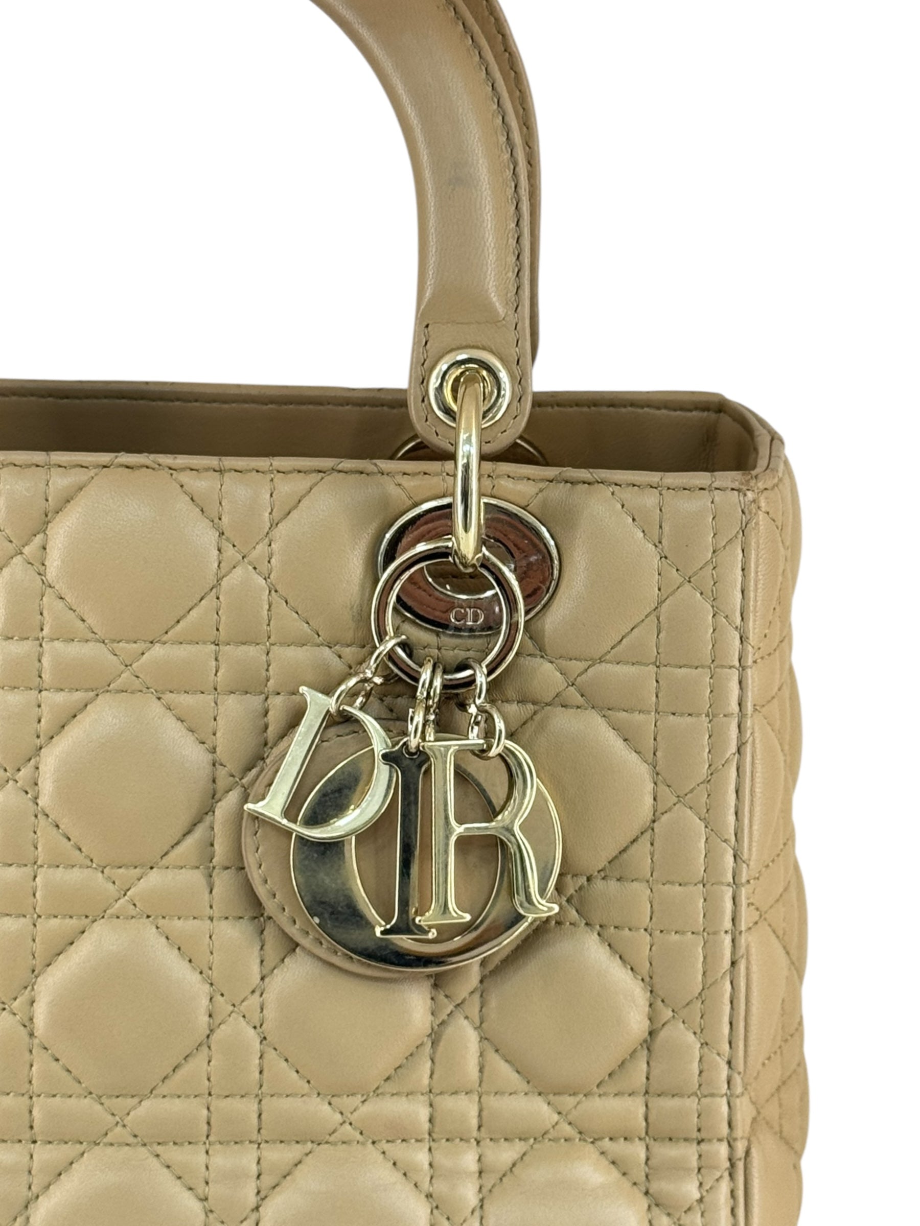 Christian Dior Beige Diamond Lambskin Medium Lady Dior Bag