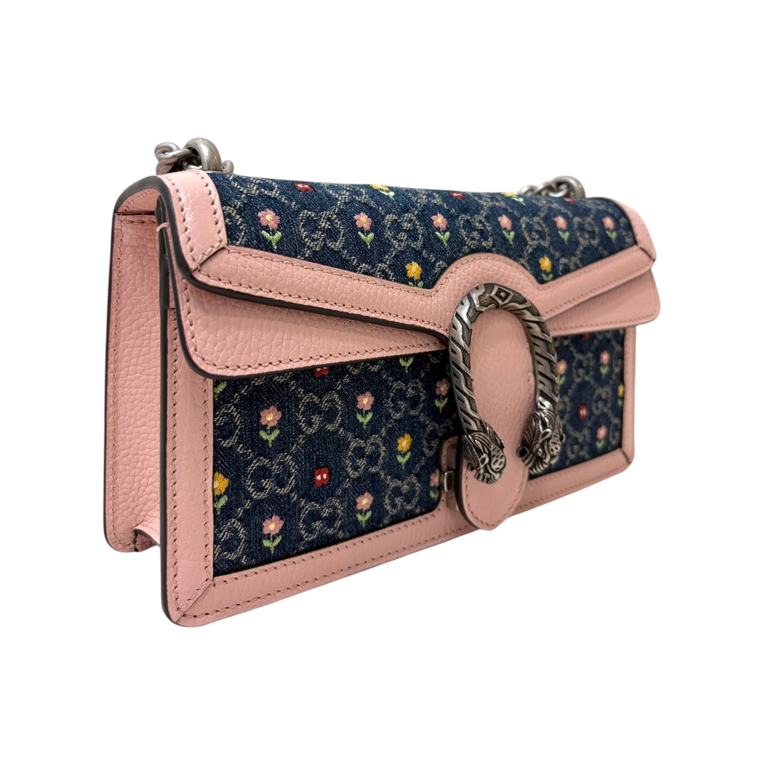 Gucci Pink Denim Floral Embroidered GG Monogram Dionysus Bag