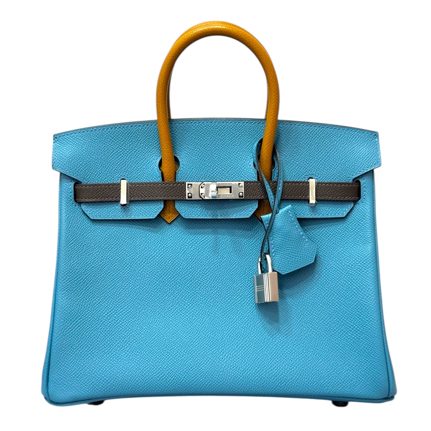 Hermes Birkin 25 Tricolor Blue Jean/Ecorce/Sesame Epsom Leather With Palladium Hardware