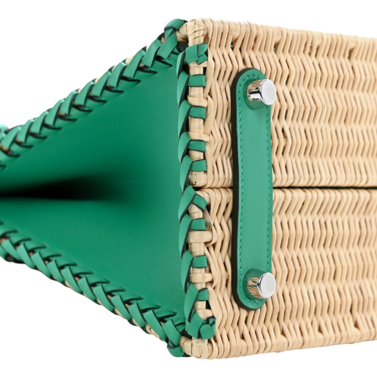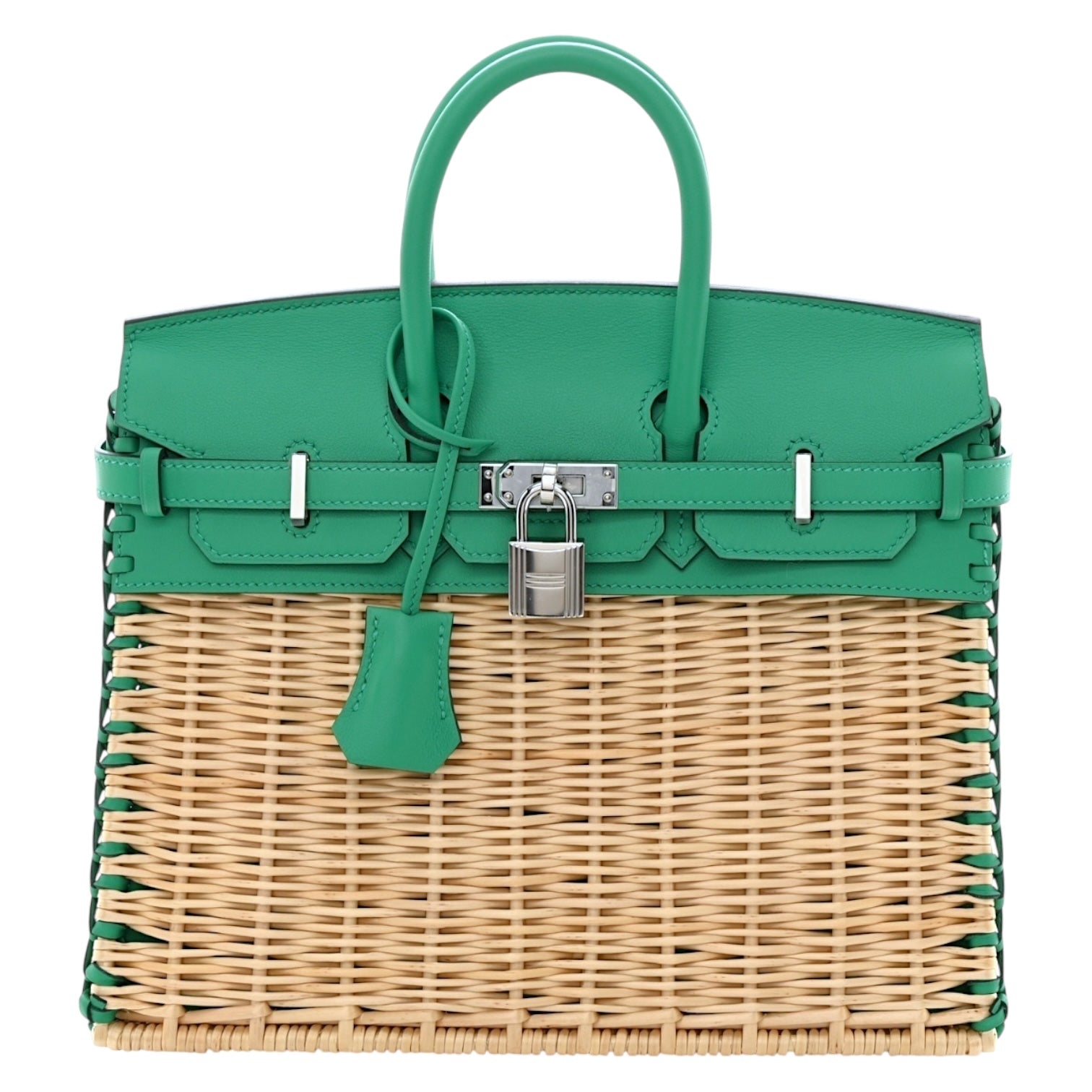 Hermès Birkin 25 Picnic Wicker & Swift Leather Bag In Menthe With Palladium Hardware