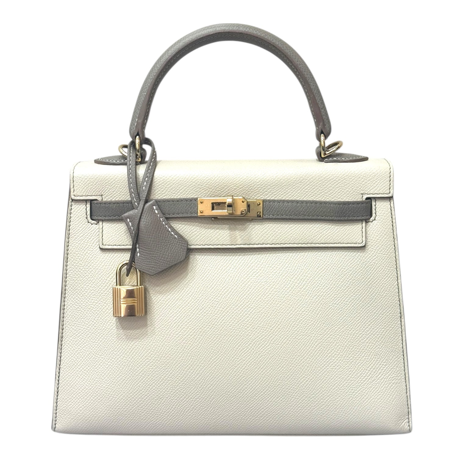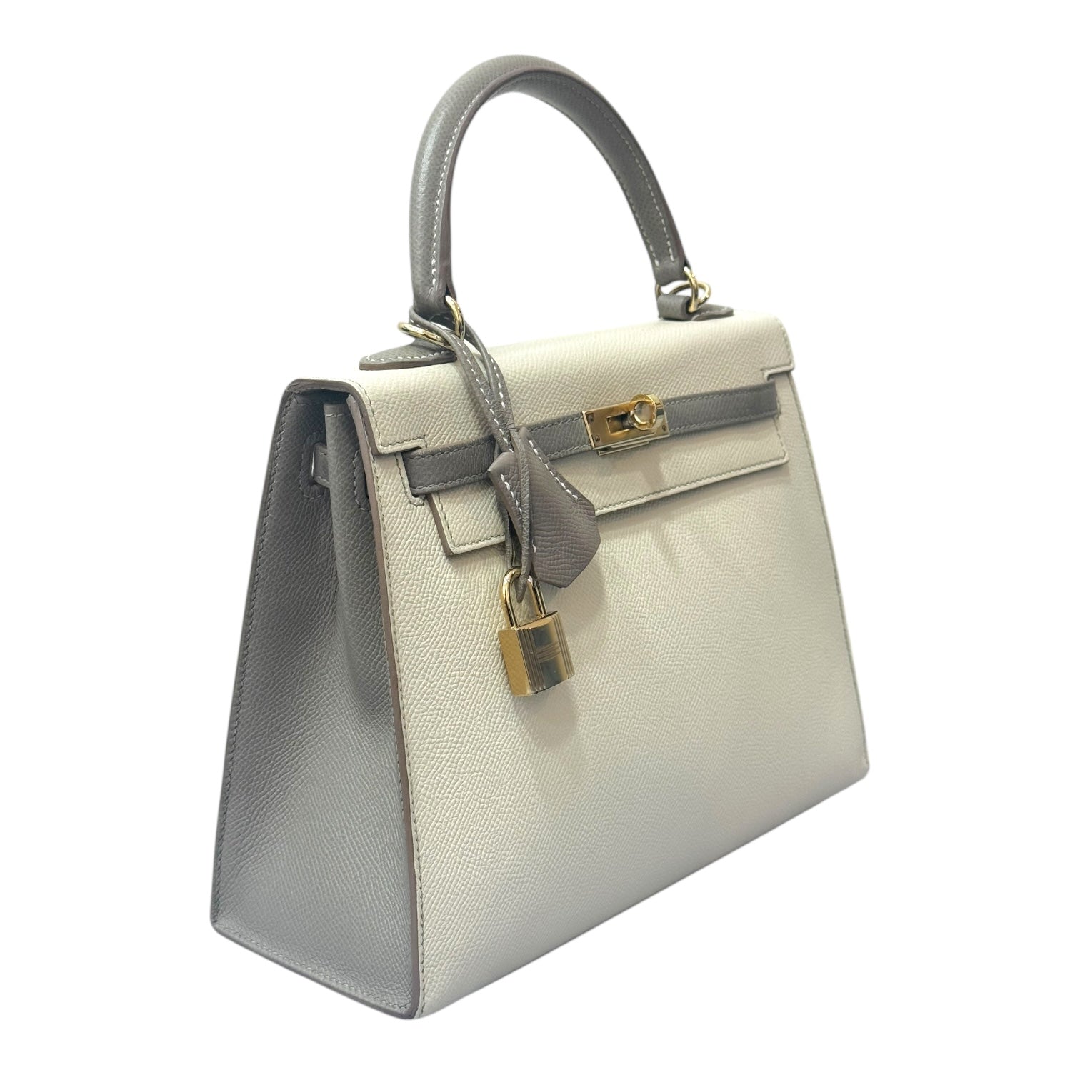 Hermès Kelly 25 Craie & Gris Asphalte In Epsom Leather With Gold Hardware