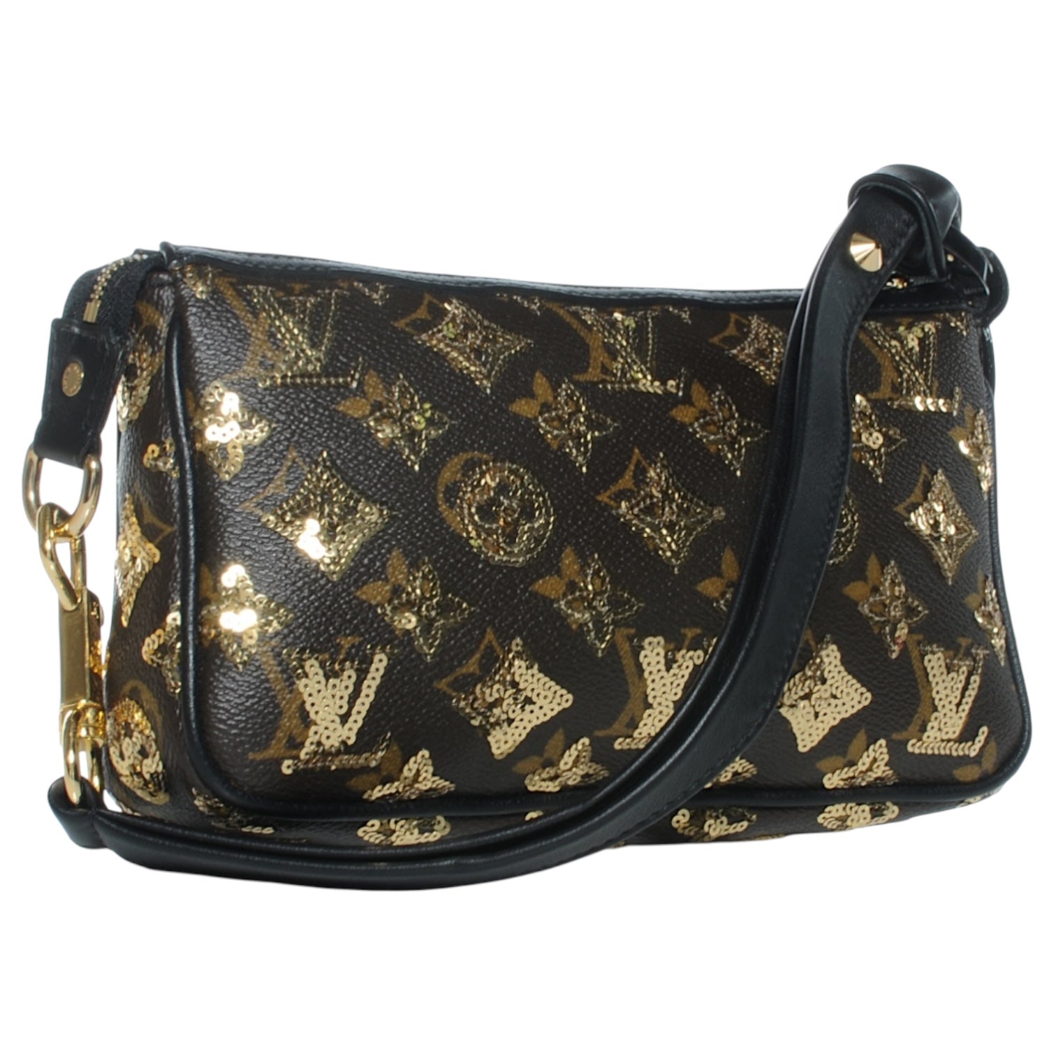 Add a dazzling statement to your collection with the Louis Vuitton Monogram Sequins Eclipse Pochette. Crafted in sleek black leather and embellished with shimmering gold sequins in the iconic Monogram pattern, this limited-edition piece is perfect for evening events or adding sparkle to your daywear. Finished with gold-tone hardware and a detachable strap, it’s both eye-catching and functional. A true collector’s gem for those who love standout luxury.