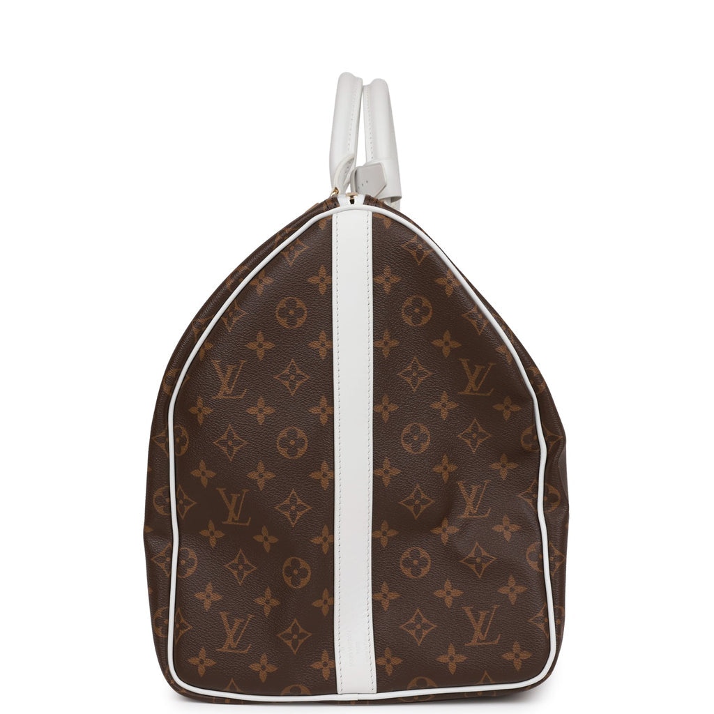From the exclusive Louis Vuitton x NBA collaboration designed by Virgil Abloh, this Keepall 55 is a standout piece that reinterprets the iconic travel bag through a bold, sports-luxe lens. Crafted in Monogram coated canvas with white leather trim, red accents, and a contrasting blue shoulder strap, the design features the official NBA logo patch and signature net side panel detailing. Spacious, structured, and highly collectible, this limited edition Keepall combines Louis Vuitton’s travel heritage with modern streetwear culture under Abloh’s visionary direction.