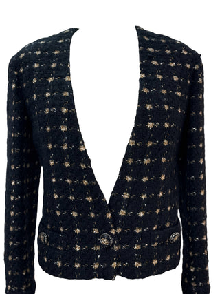 Chanel 2018 Ivory Pearl-Embellished Flared Tweed Jacket with Sunburst CC Buttons