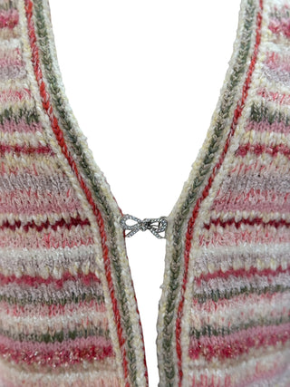 Chanel Pink Multicolor Knit Sleeveless Vest With Crystal CC Bow Clasp