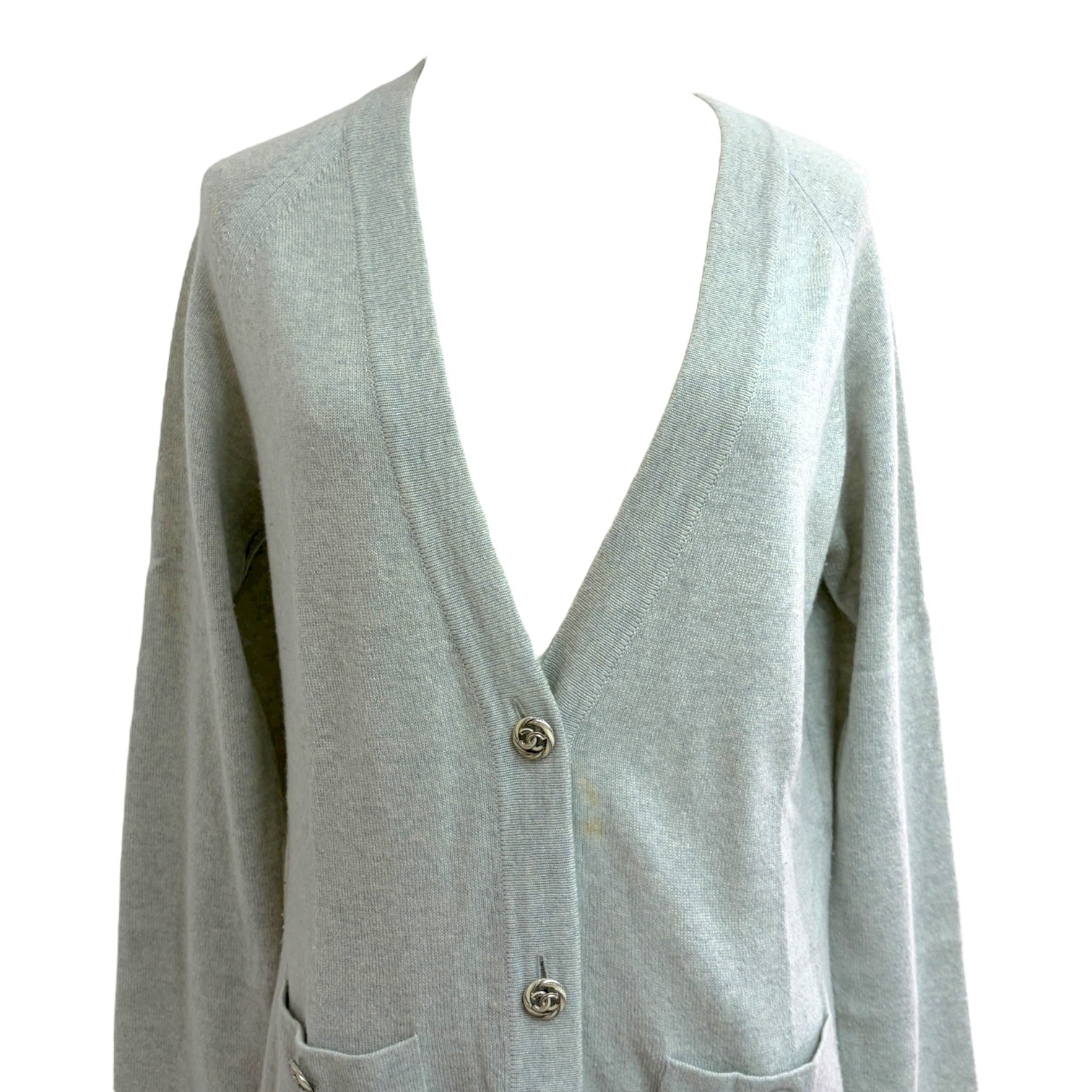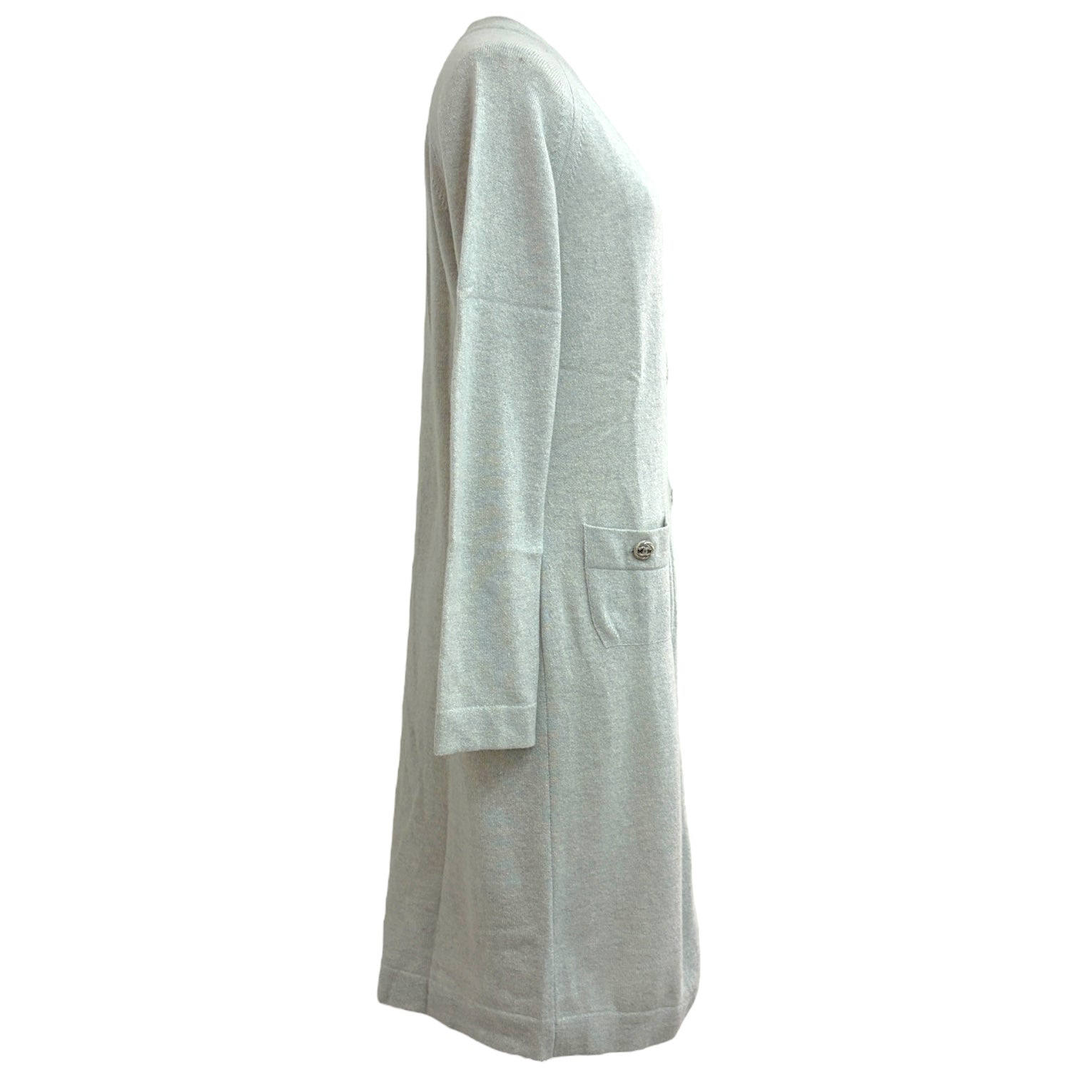 Chanel Light Grey Longline Cashmere Cardigan