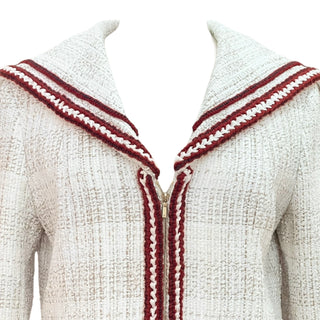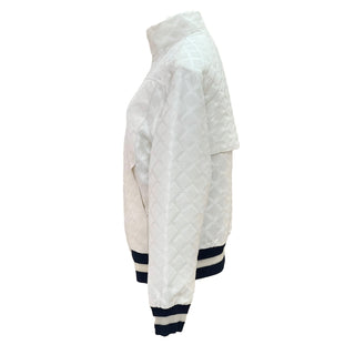 Chanel White Textured Diamond Quilted Bomber Jacket with Contrast Trim