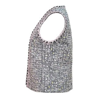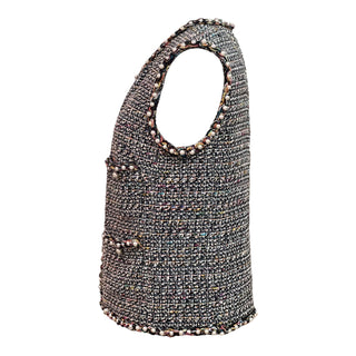 Chanel Multicolor Tweed Sleeveless Vest Jacket with Pearl Embellishments