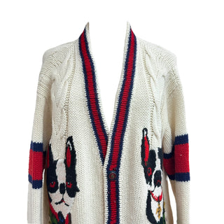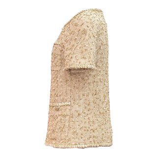 Chanel 2018 Ivory Pearl-Embellished Flared Tweed Jacket with Sunburst CC Buttons