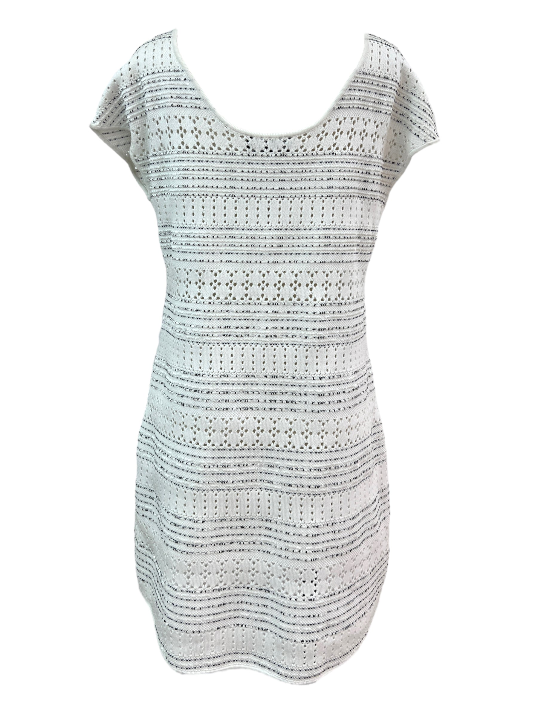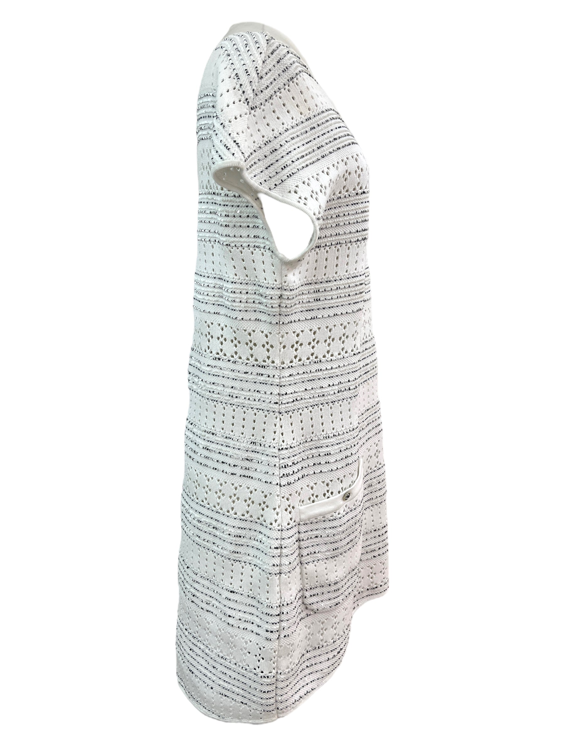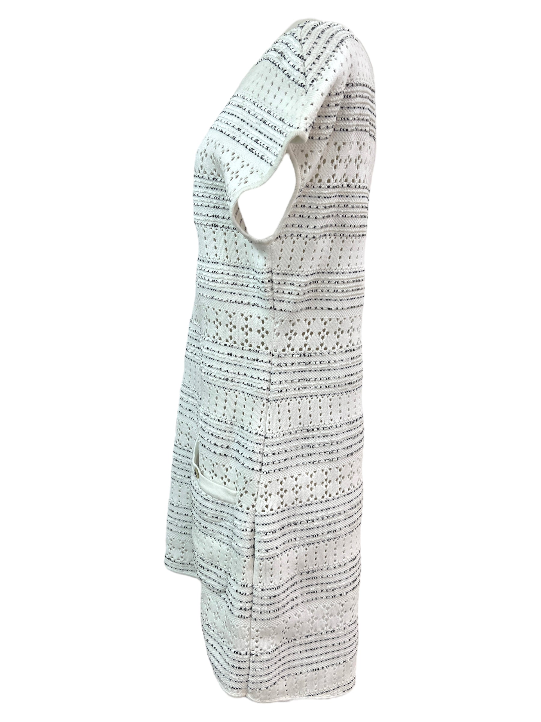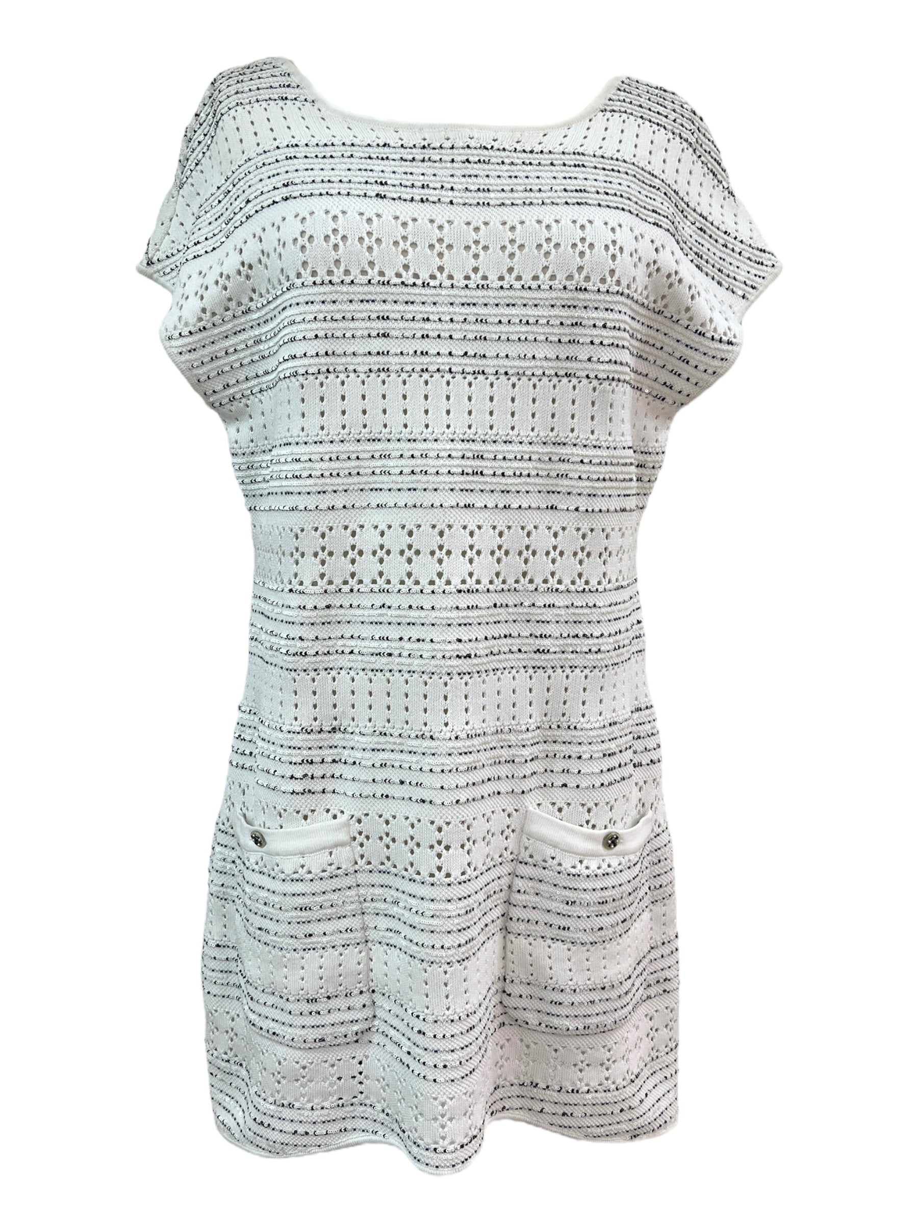 Chanel White Scalloped Eyelet Lace Dress With Pockets