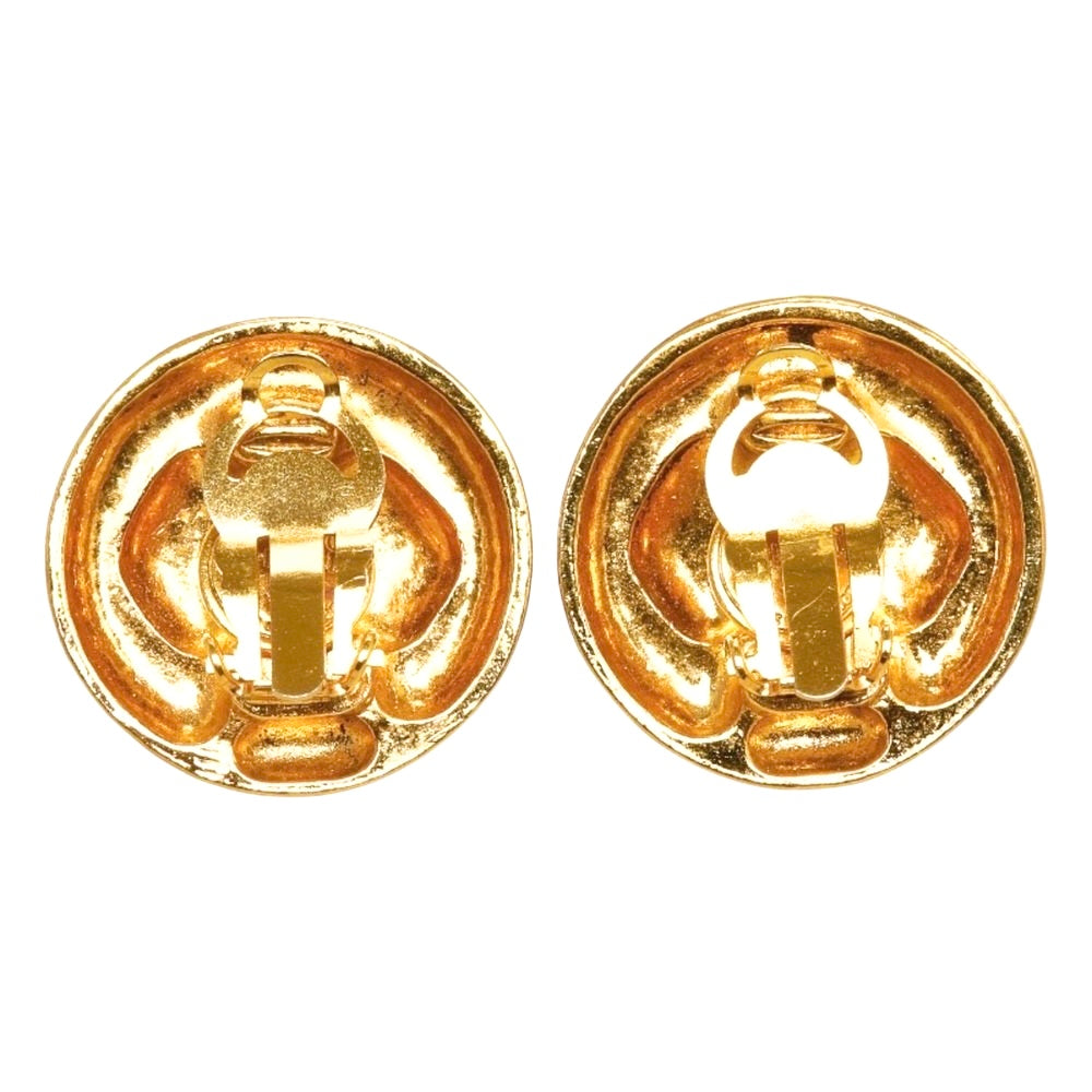 Chanel Vintage Round Diamond Rhinestone Clip-On Earrings