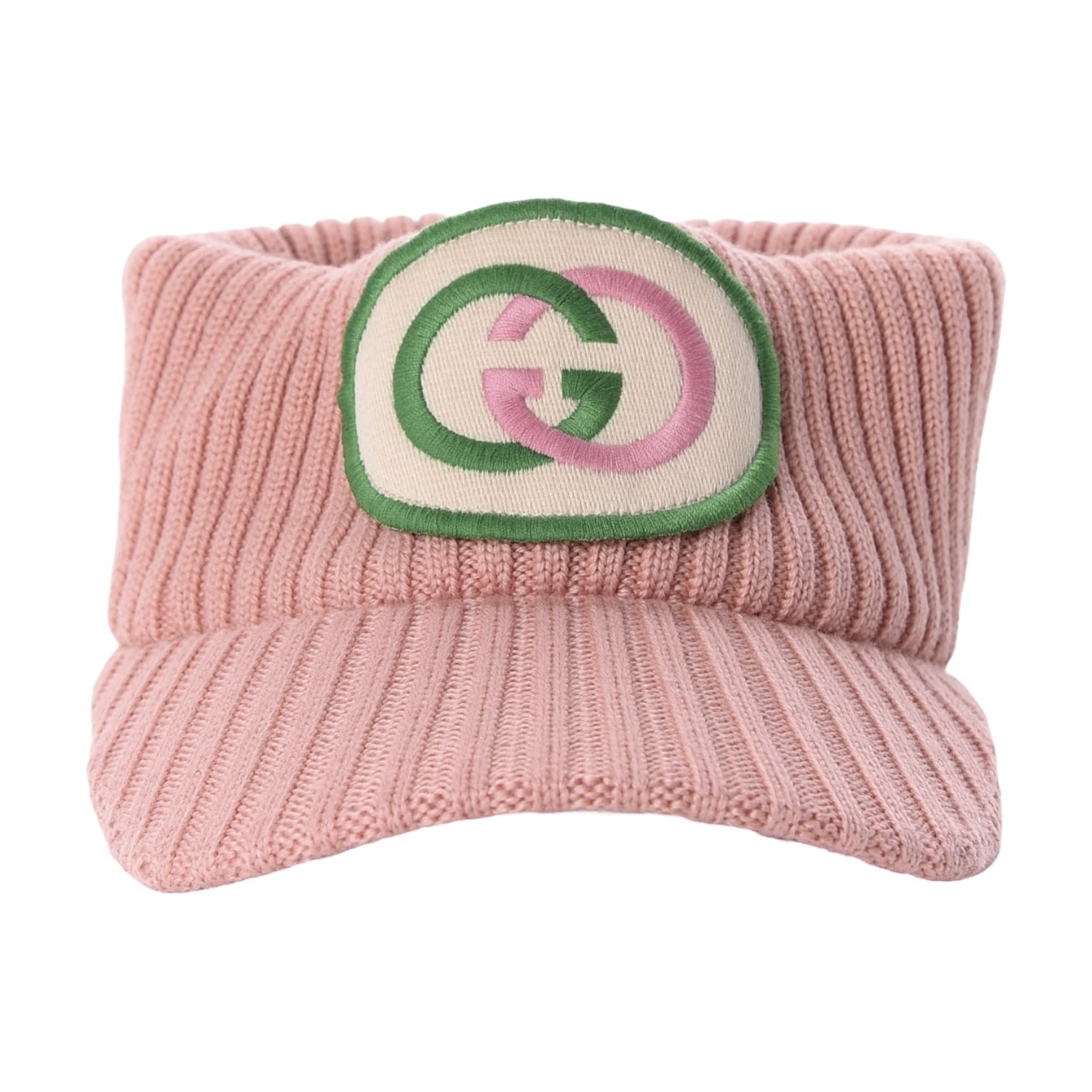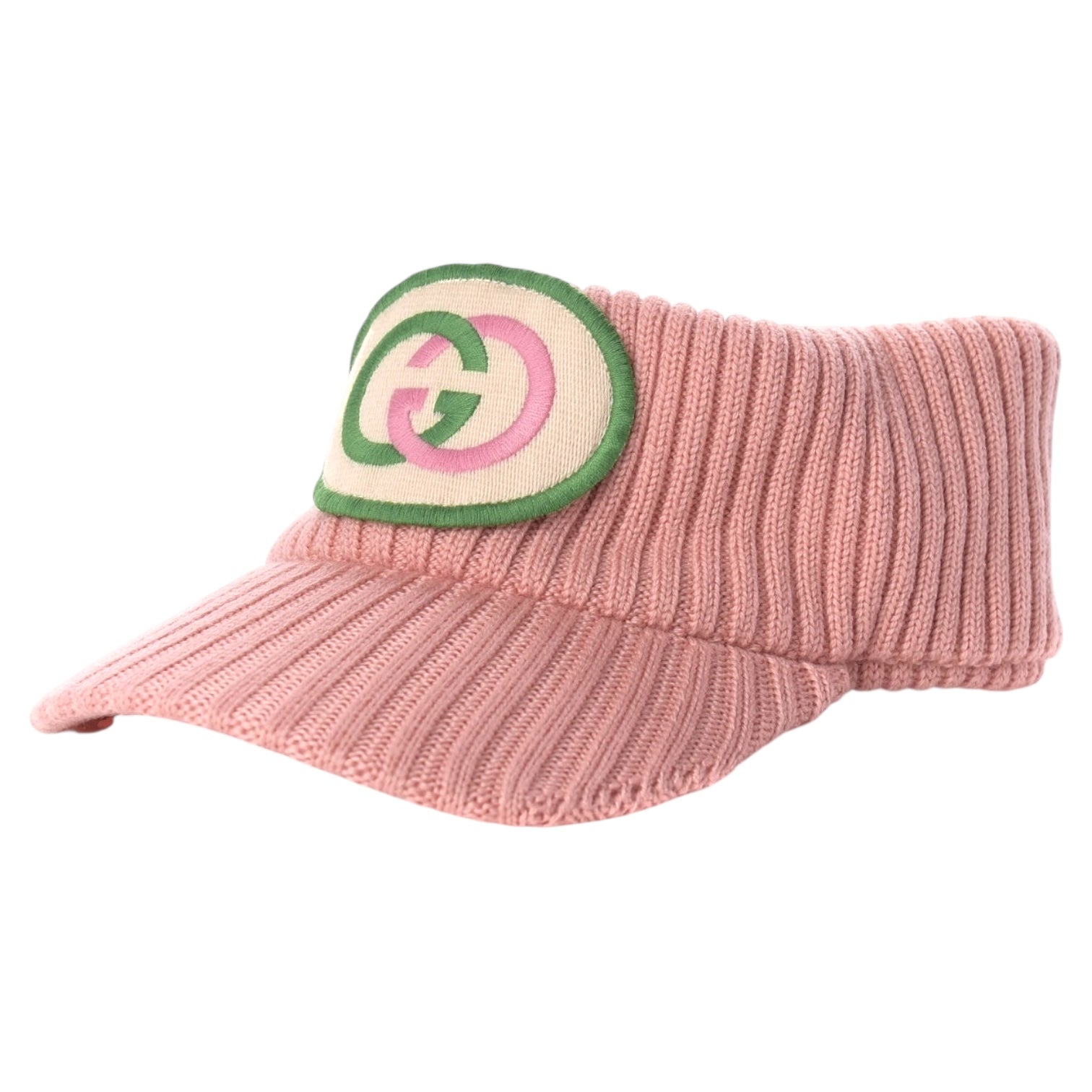This Gucci Pink Wool Visor Hat blends sporty ease with signature luxury. Crafted from soft ribbed wool in a playful blush pink, the visor silhouette offers a chic twist on casual headwear.
