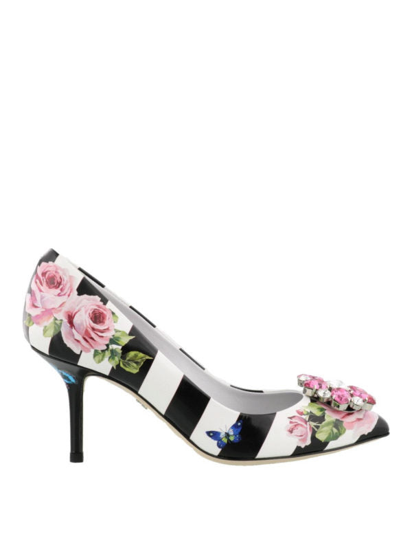 Dolce & Gabbana Rose Print Stripped Leather Pumps