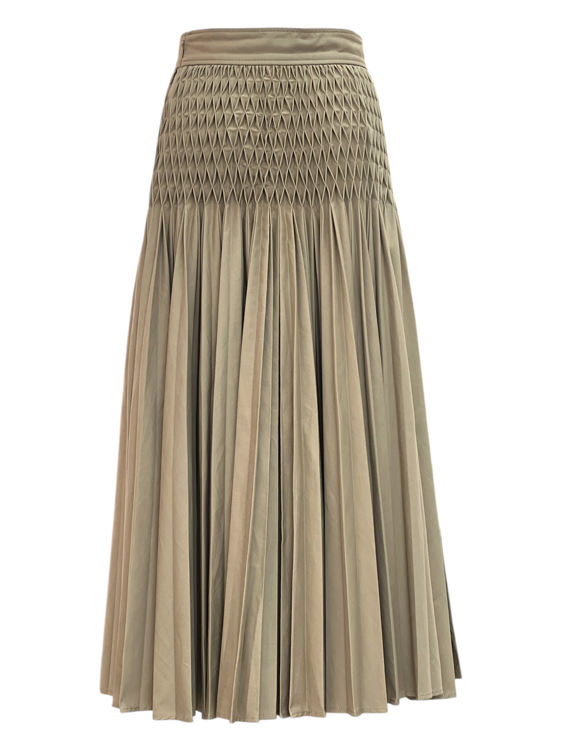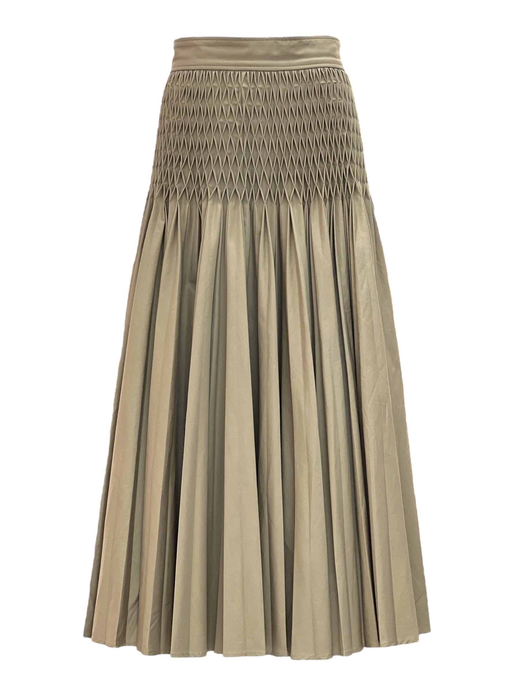 Christian Dior Beige Ruched Smocked Waist Pleated Skirt