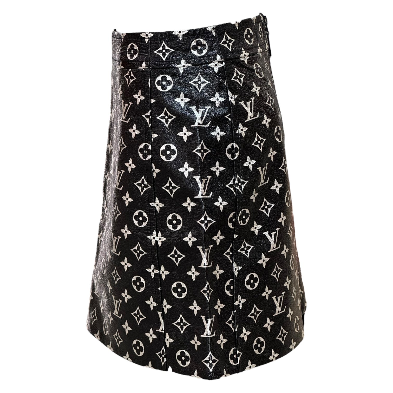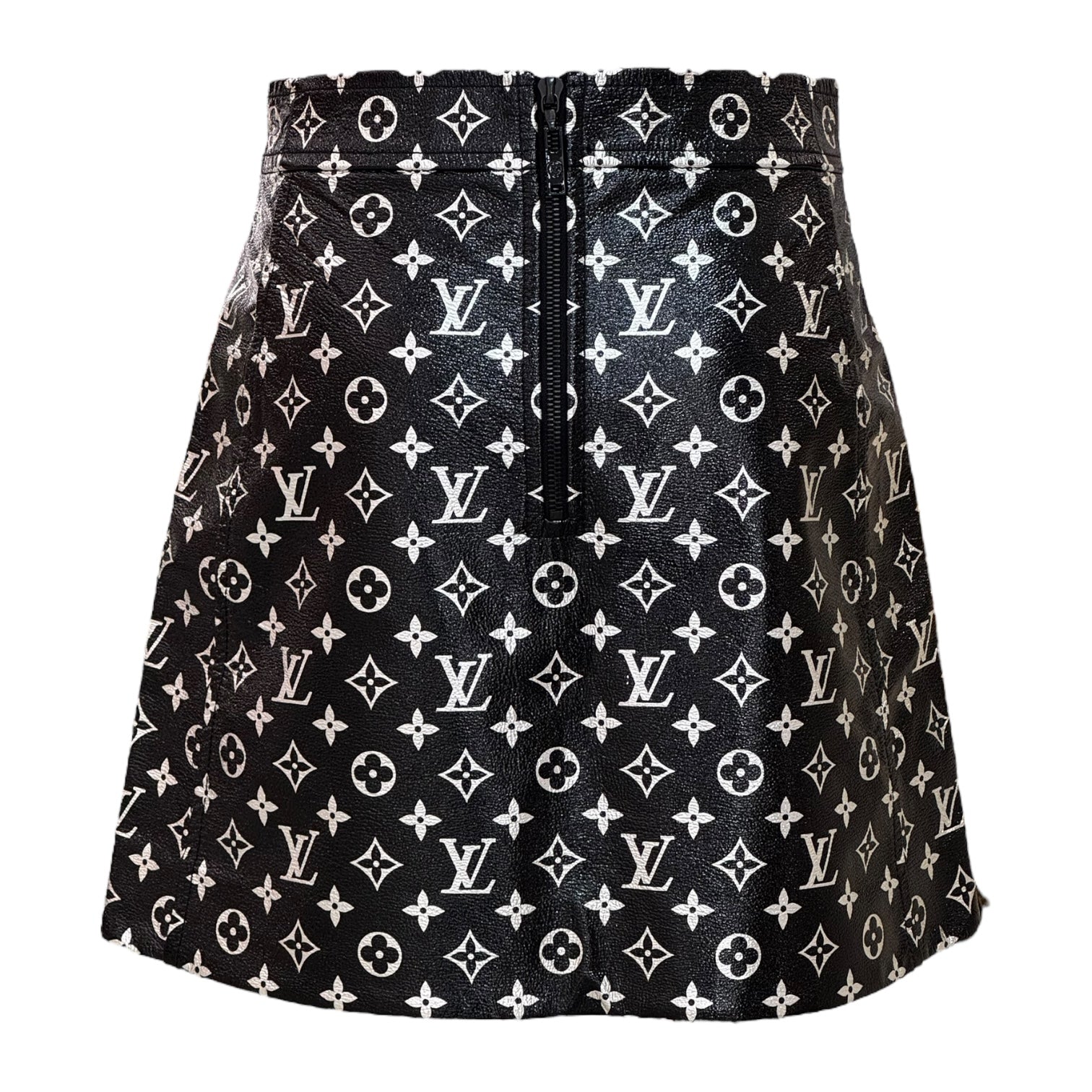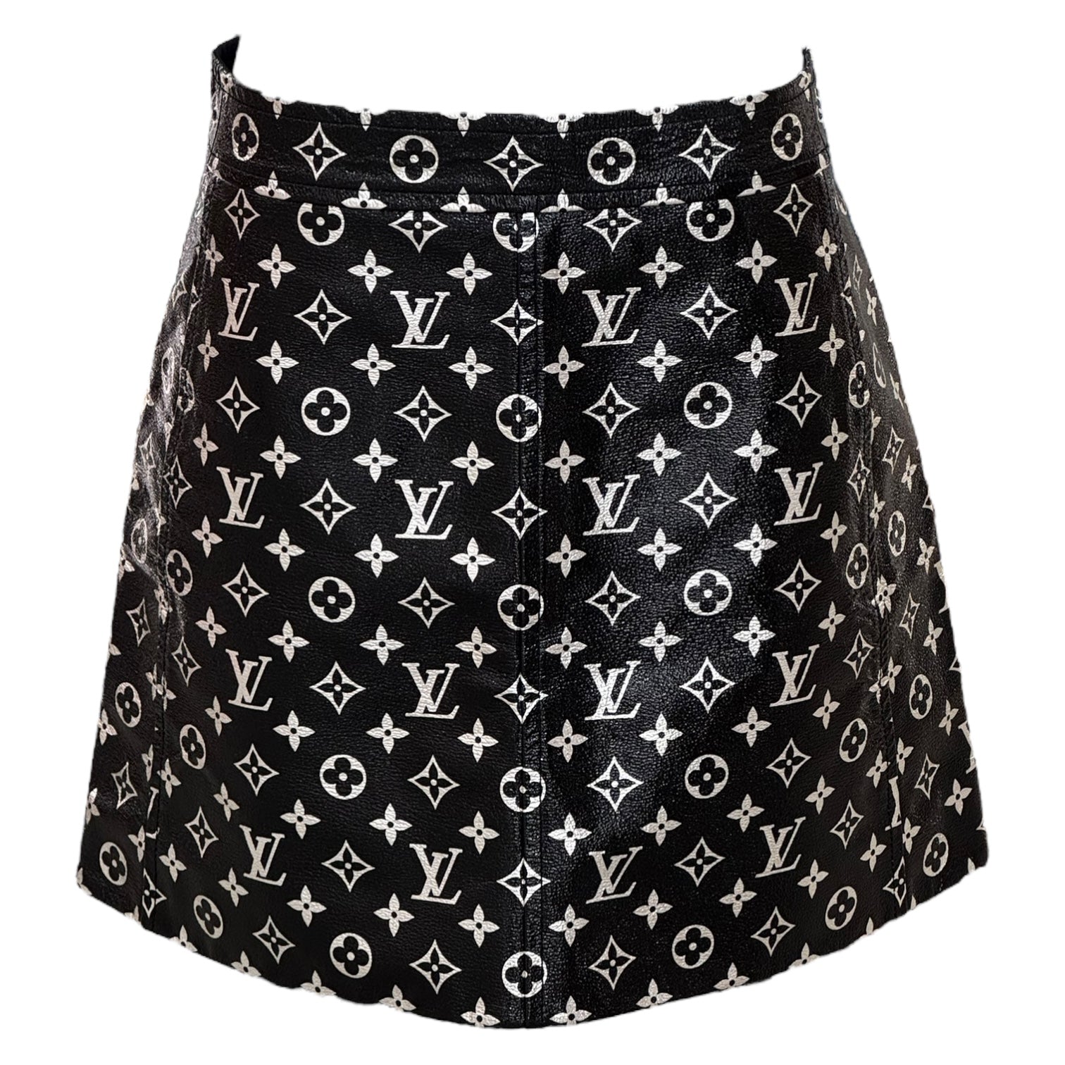 Louis Vuitton Black Monogram Printed Leather Mini Skirt