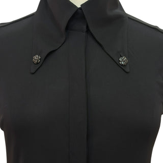 Chanel Black Crochet Knit Hooded Long Vest with Crystal Camellia Buttons