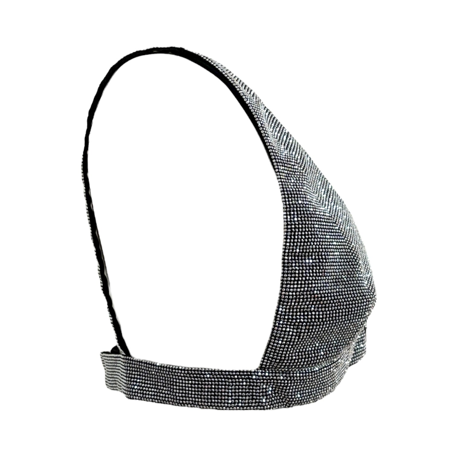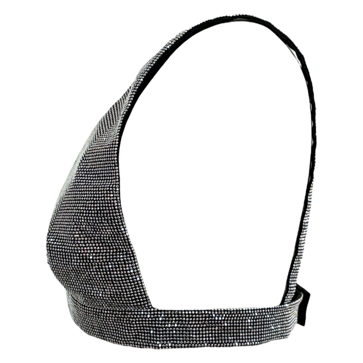 This dazzling Prada bralette is adorned with all-over crystal embellishments, showcasing the brand’s signature triangle logo at the center. Featuring a deep V-neckline and structured design, it exudes modern glamour with a bold, luxurious edge — perfect for statement layering or evening allure.