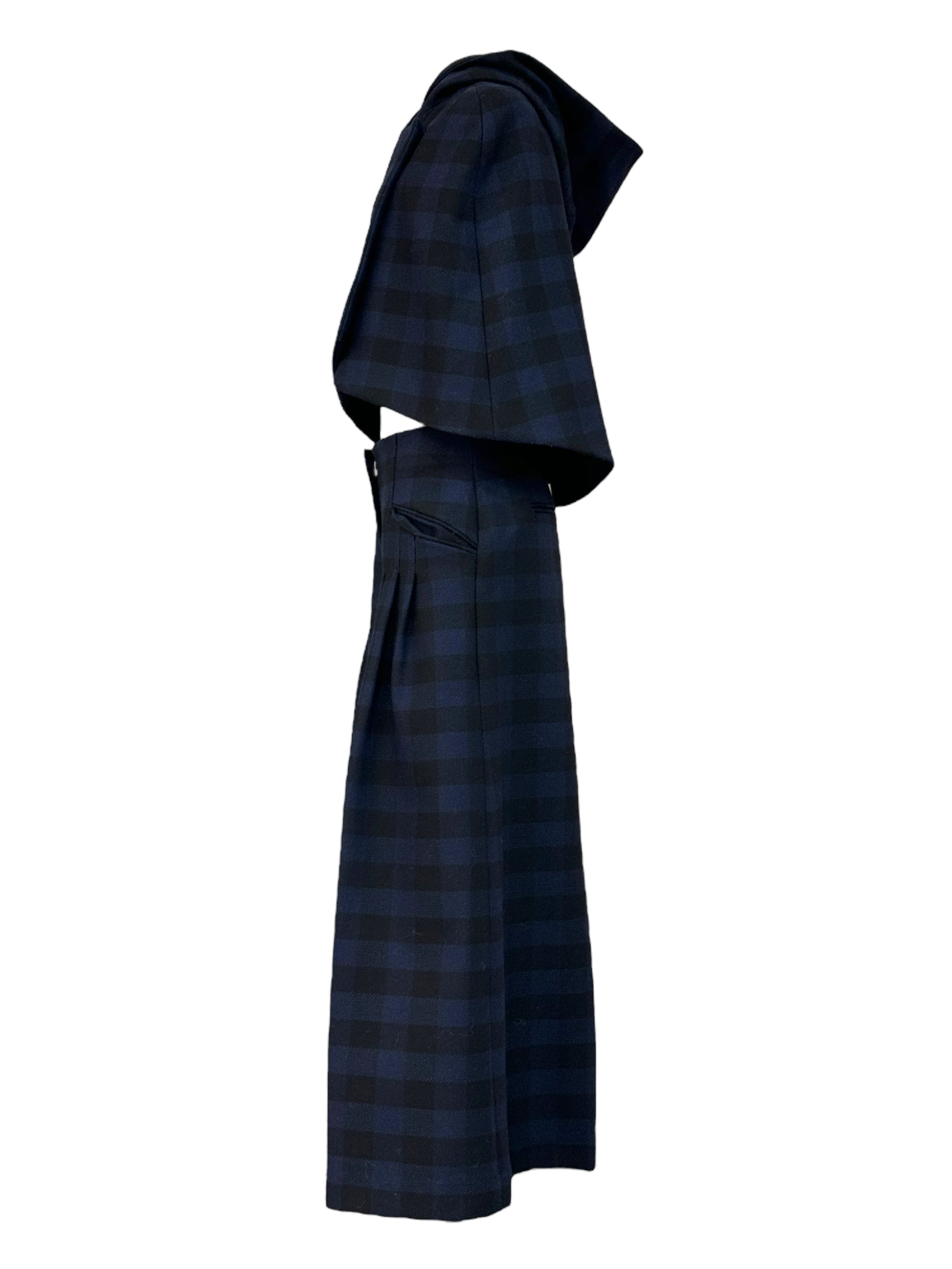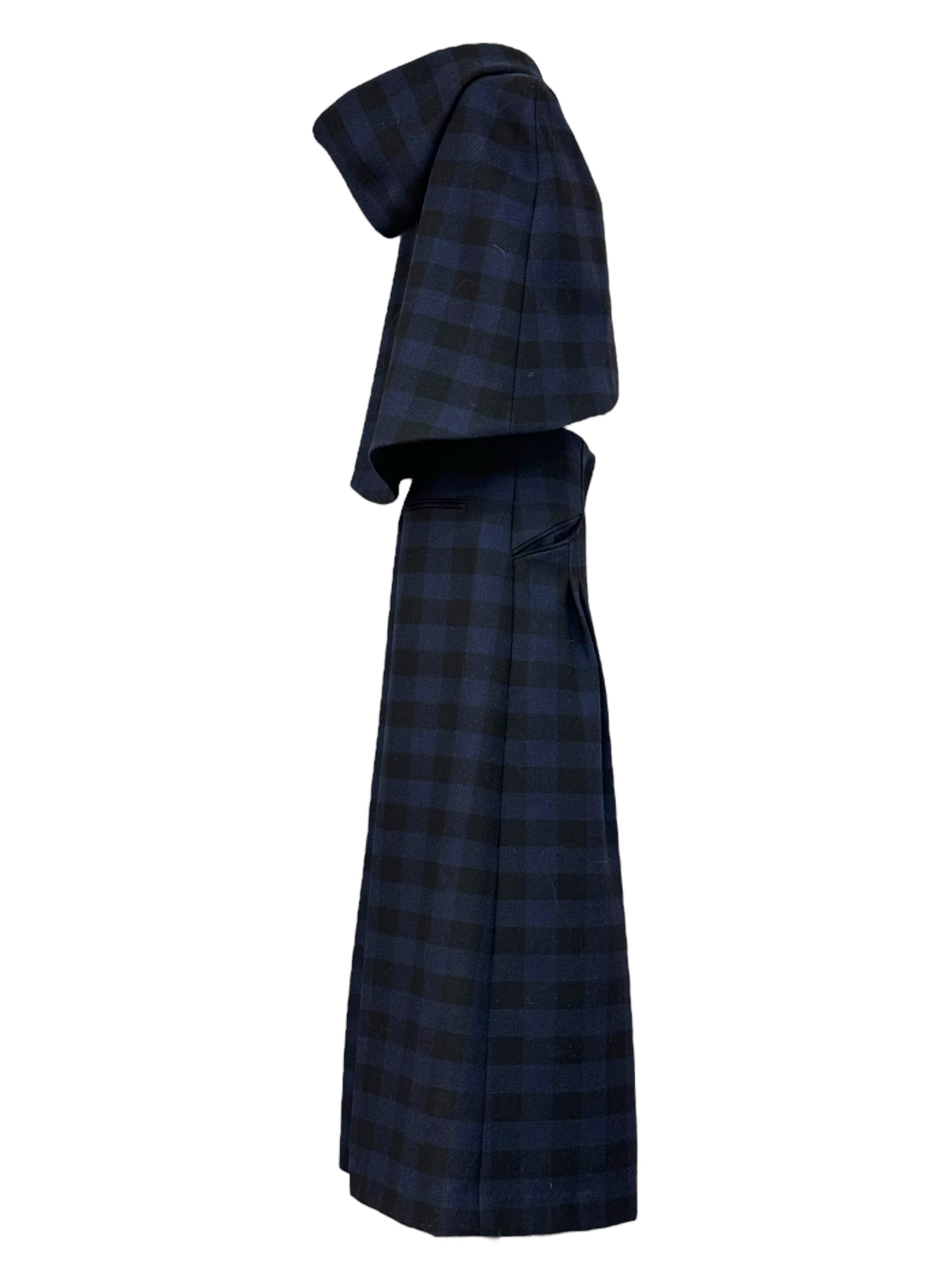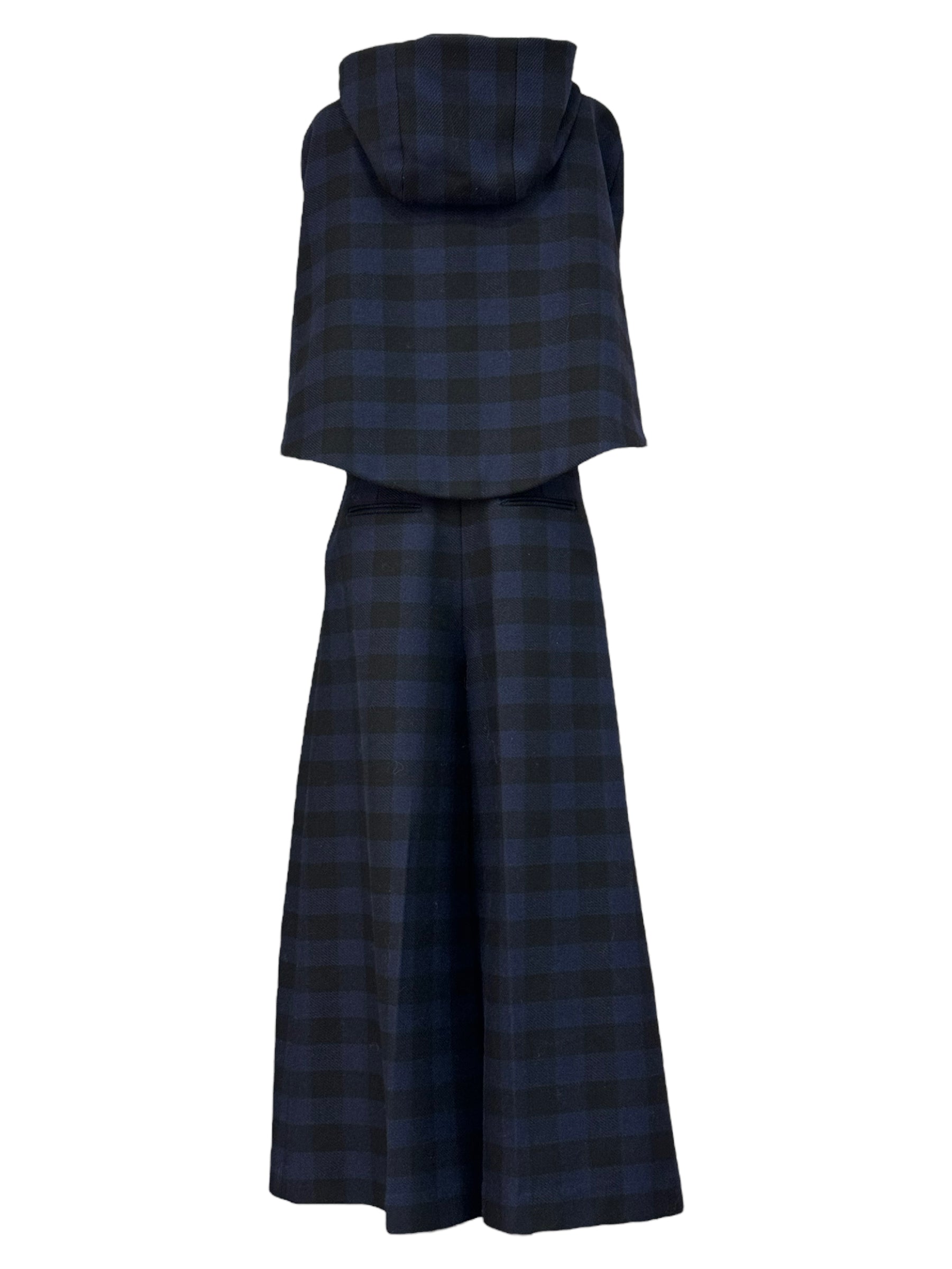 Christian Dior Navy Checkered Hooded Cape & Pleated Trouser Set