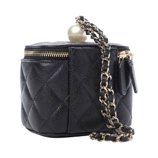 Chanel Black Grained Calfskin & Imitation Pearl Small Vanity Case with Ghw