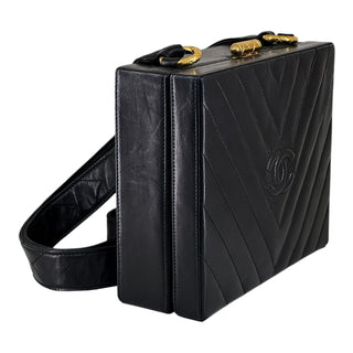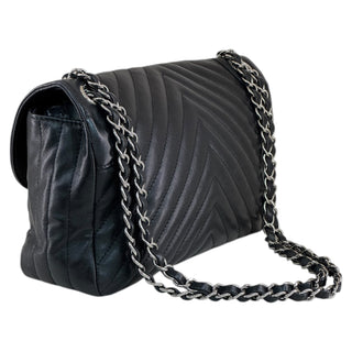 Chanel Black Chevron Quilted Lambskin Round Flap Bag With Silver-Tone Hardware