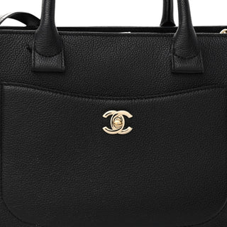 Chanel Black Caviar Quilted Leather Turn-Lock Front Pocket Shoulder Bag With Gold Hardware