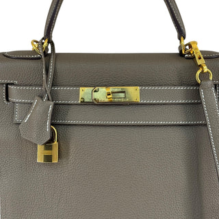 Hermès Kelly 28 Retourne In Etoupe Togo Leather With Gold Hardware