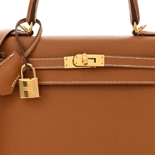 Hermès Kelly 25 Gold Epsom Leather With Gold Hardware & Shoulder Strap