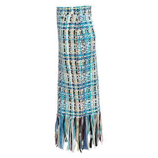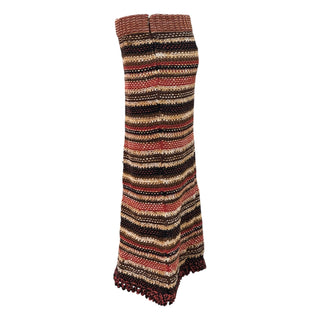 Chanel Brown Multicolor Striped Crochet Knit Midi Skirt with Scalloped Hem
