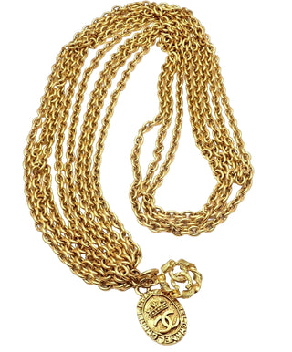 Chanel Gold Metal Pearly White Lambskin Pearl Chain Flap Bag Multi Strand Long Necklace
