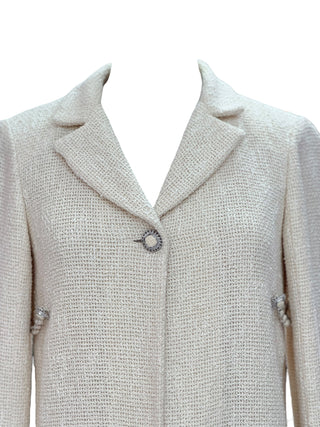 Chanel Ivory Bouclé Tweed Jacket with Crystal Button & Chain Trim Detail