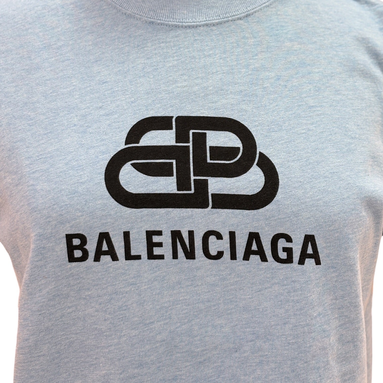 A modern essential from Balenciaga, this soft blue cotton T-shirt features the iconic interlocking BB logo printed in black across the chest. The minimalist design combined with Balenciaga’s signature branding creates a versatile piece that blends luxury with everyday wear.