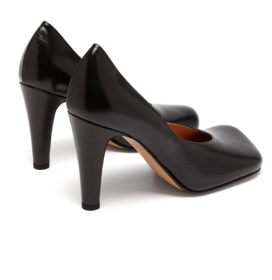 Square-toe silhouettes are a key trend for Pre-AW19 and multiple iterations of Bottega Veneta’s off-kilter black leather Bloc pumps are captured in the house's lookbook. They're crafted in Italy to sit on a leg-lengthening high heel that imbues the directional mood with a sophisticated inflection. Wear them beneath smart tailoring for a mid-week meeting.