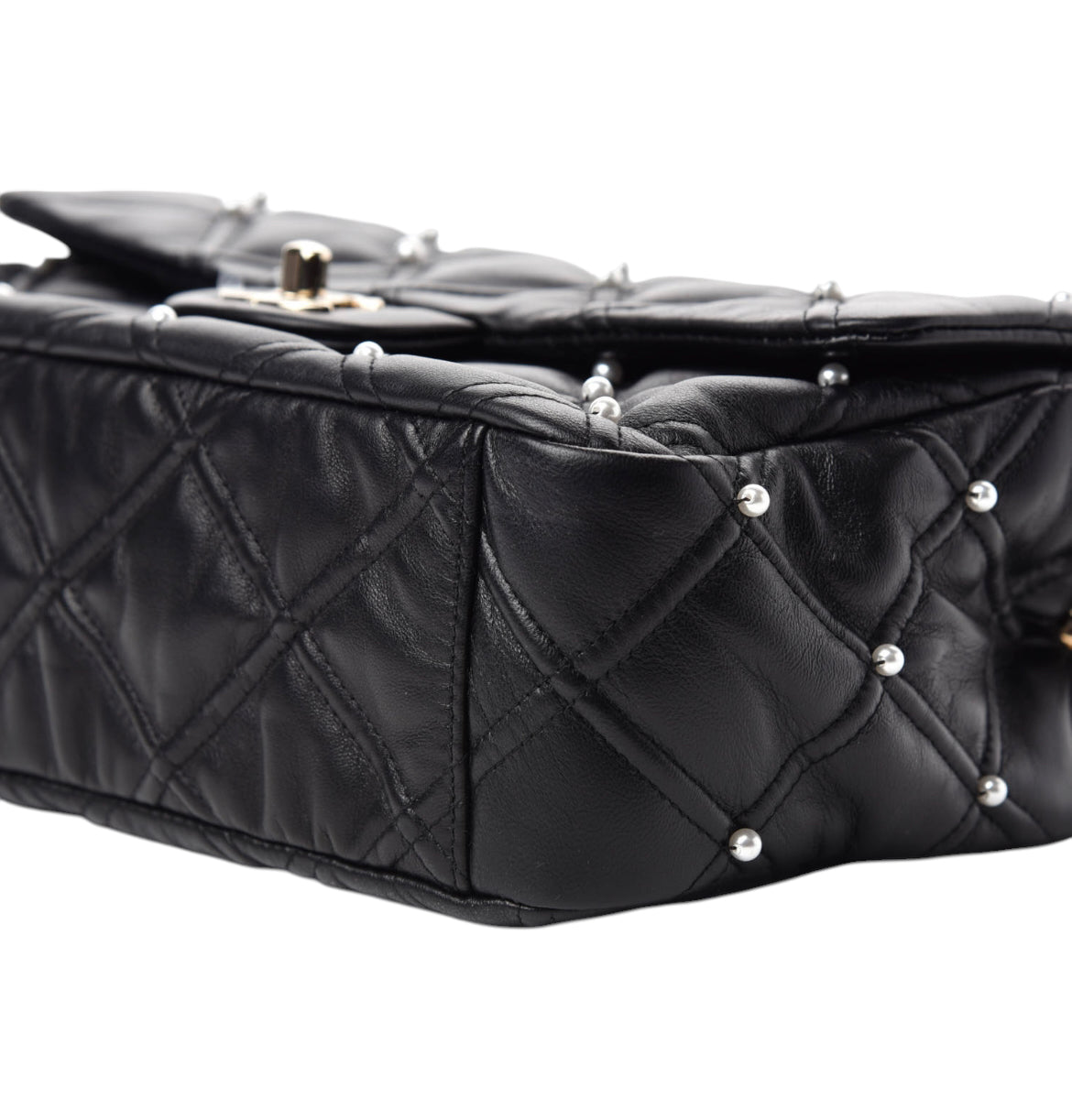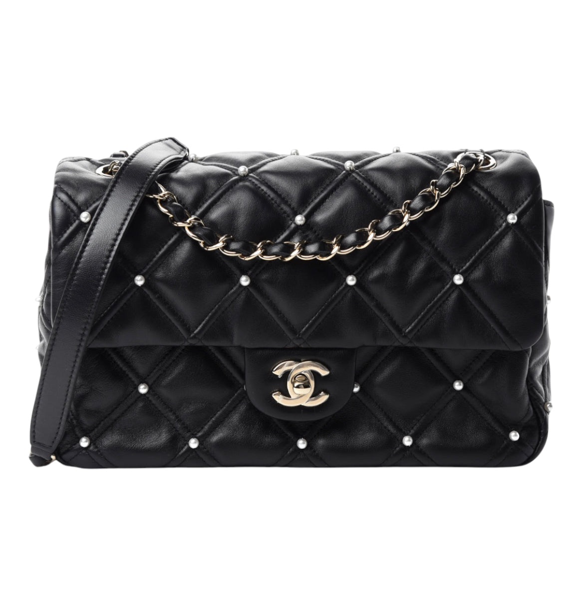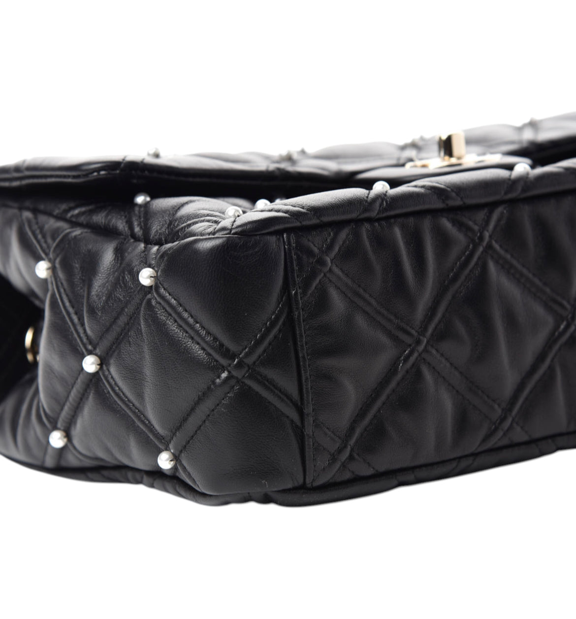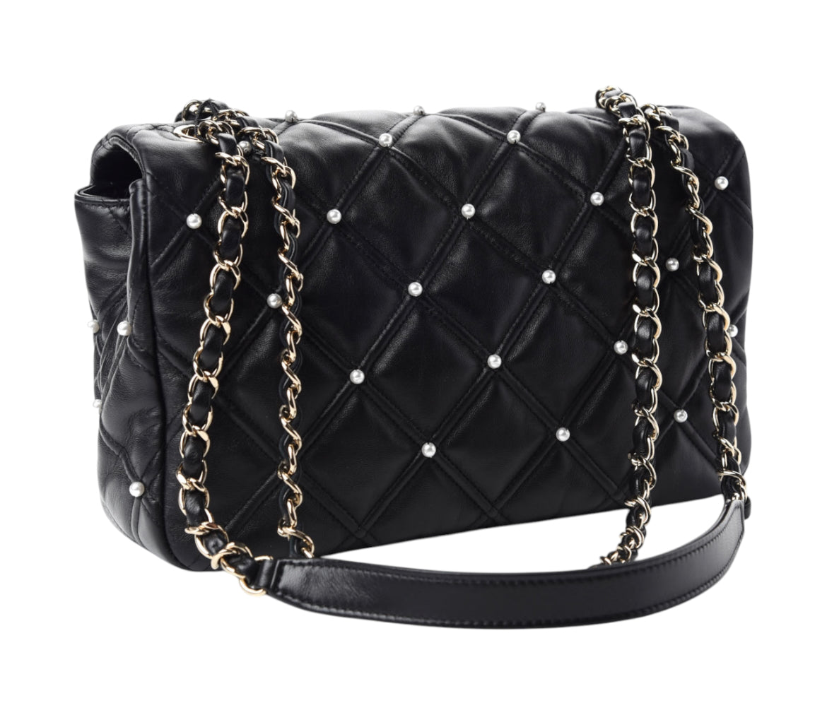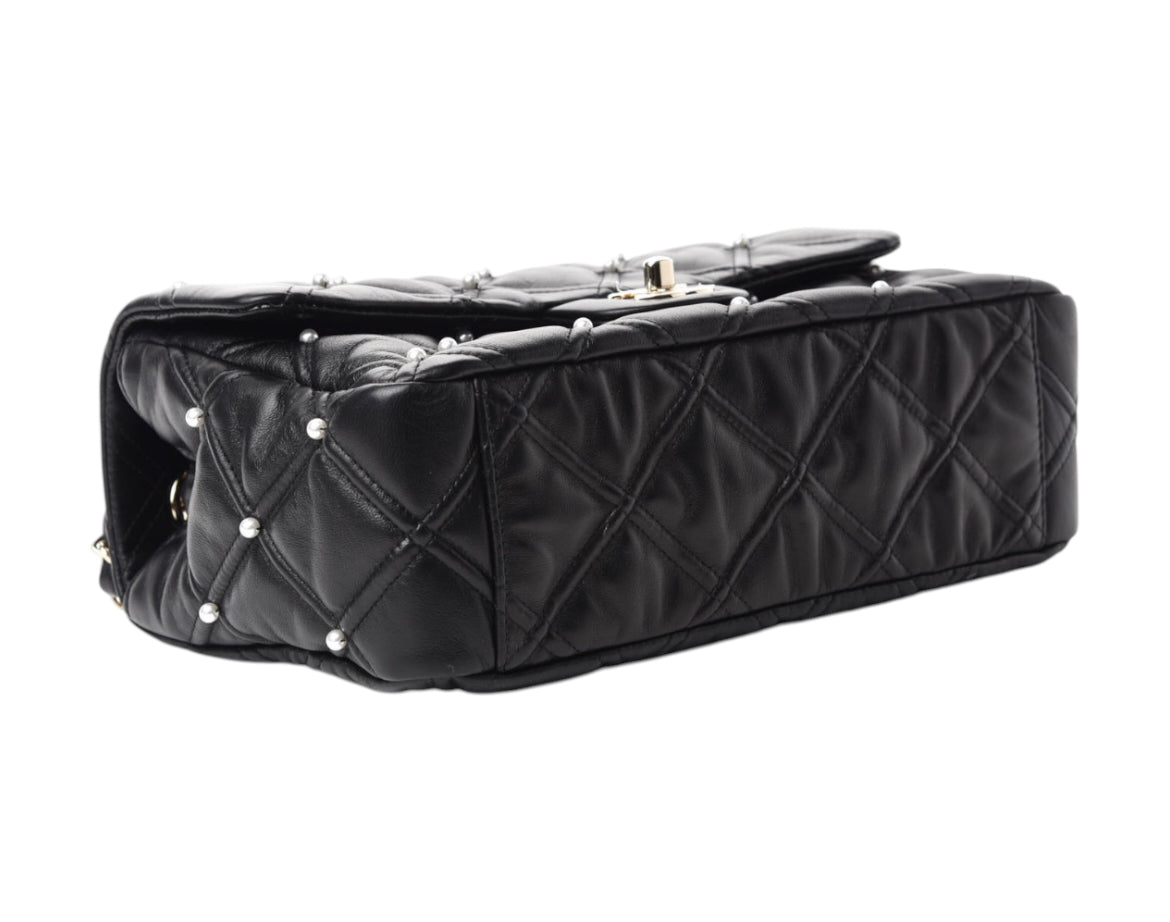 Chanel Black Lambskin Quilted Pearl Studded Flap Bag With GHW