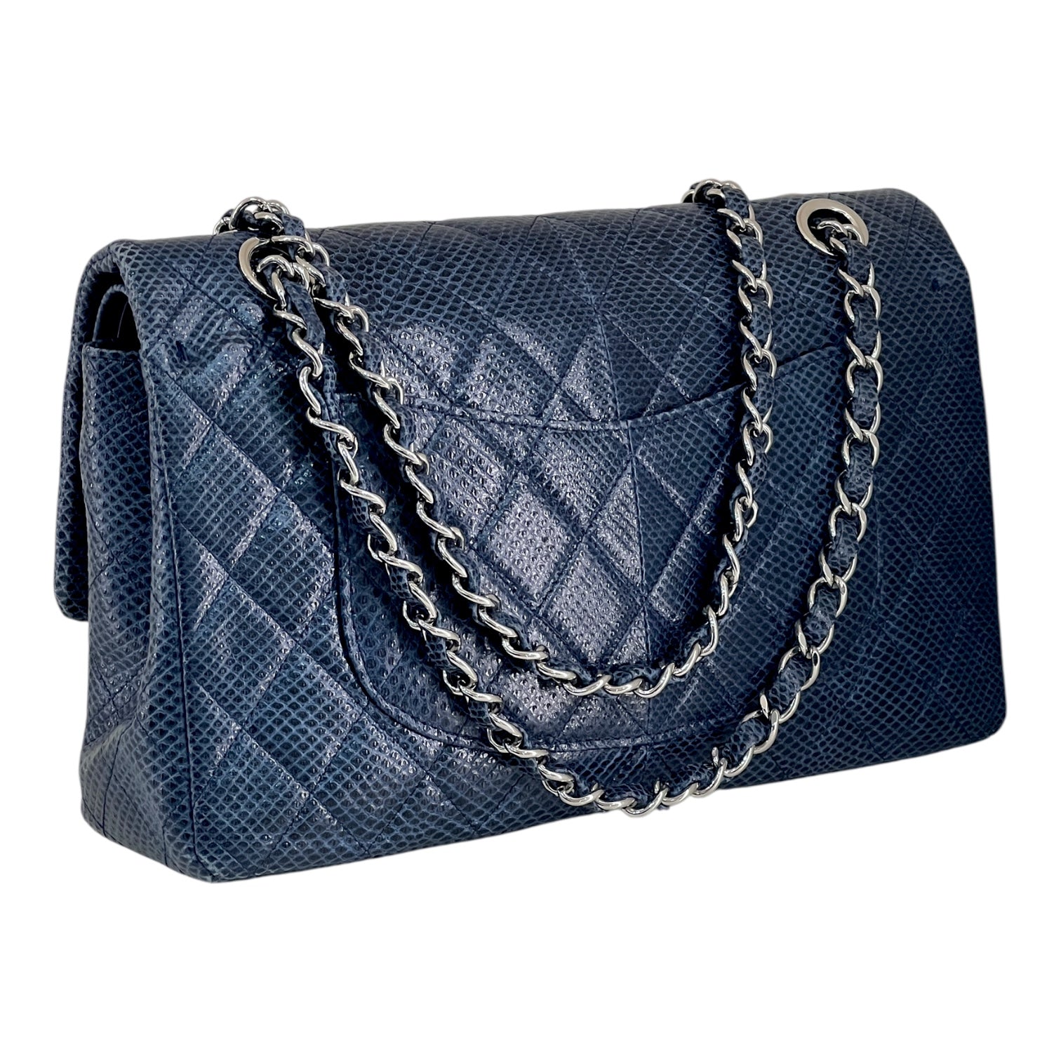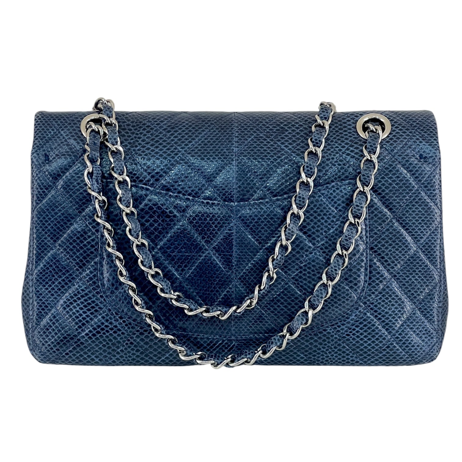 Chanel Blue Lizard Medium Double Flap Bag With Palladium Hardware