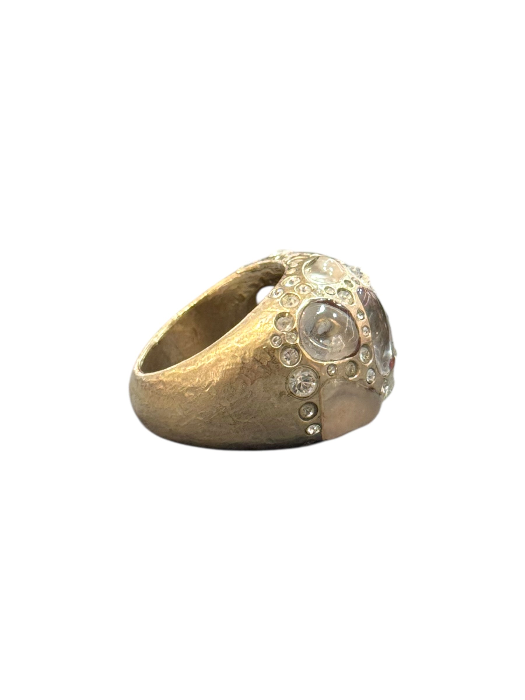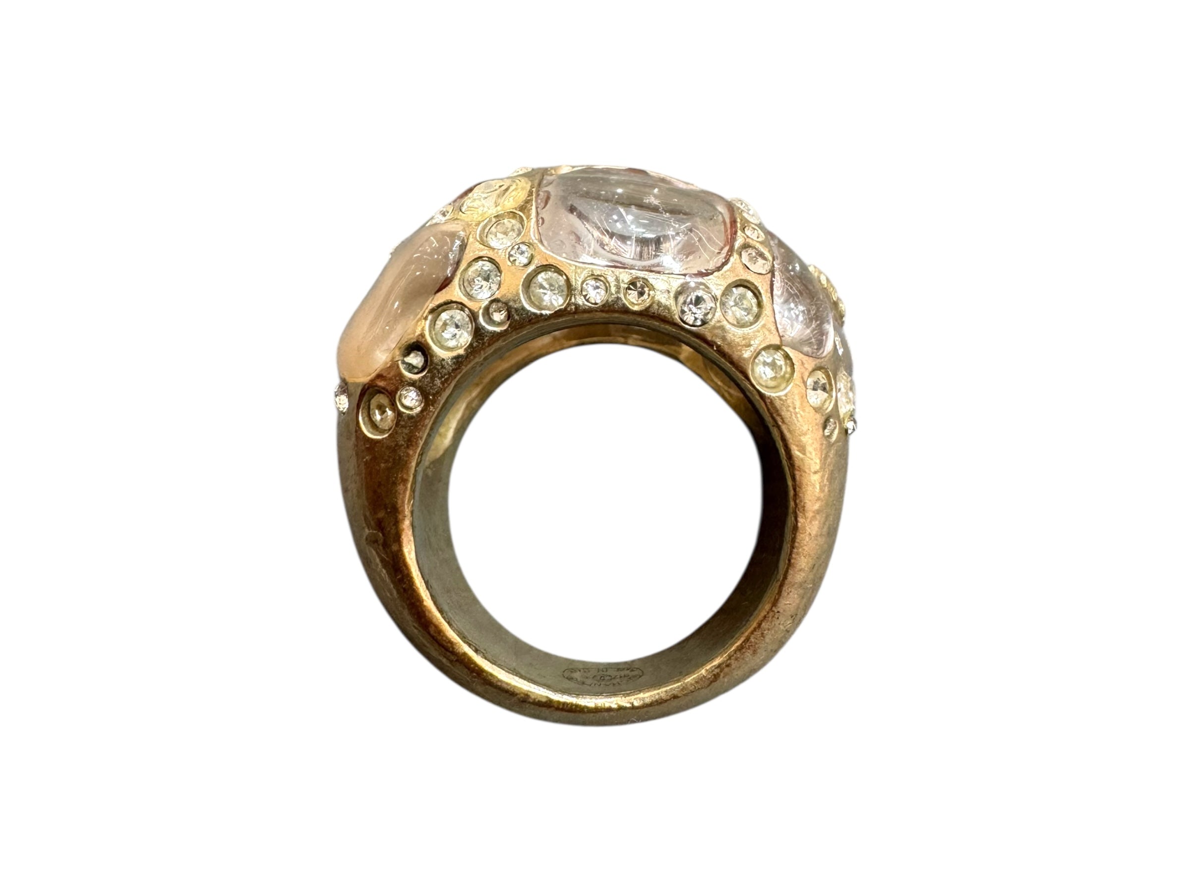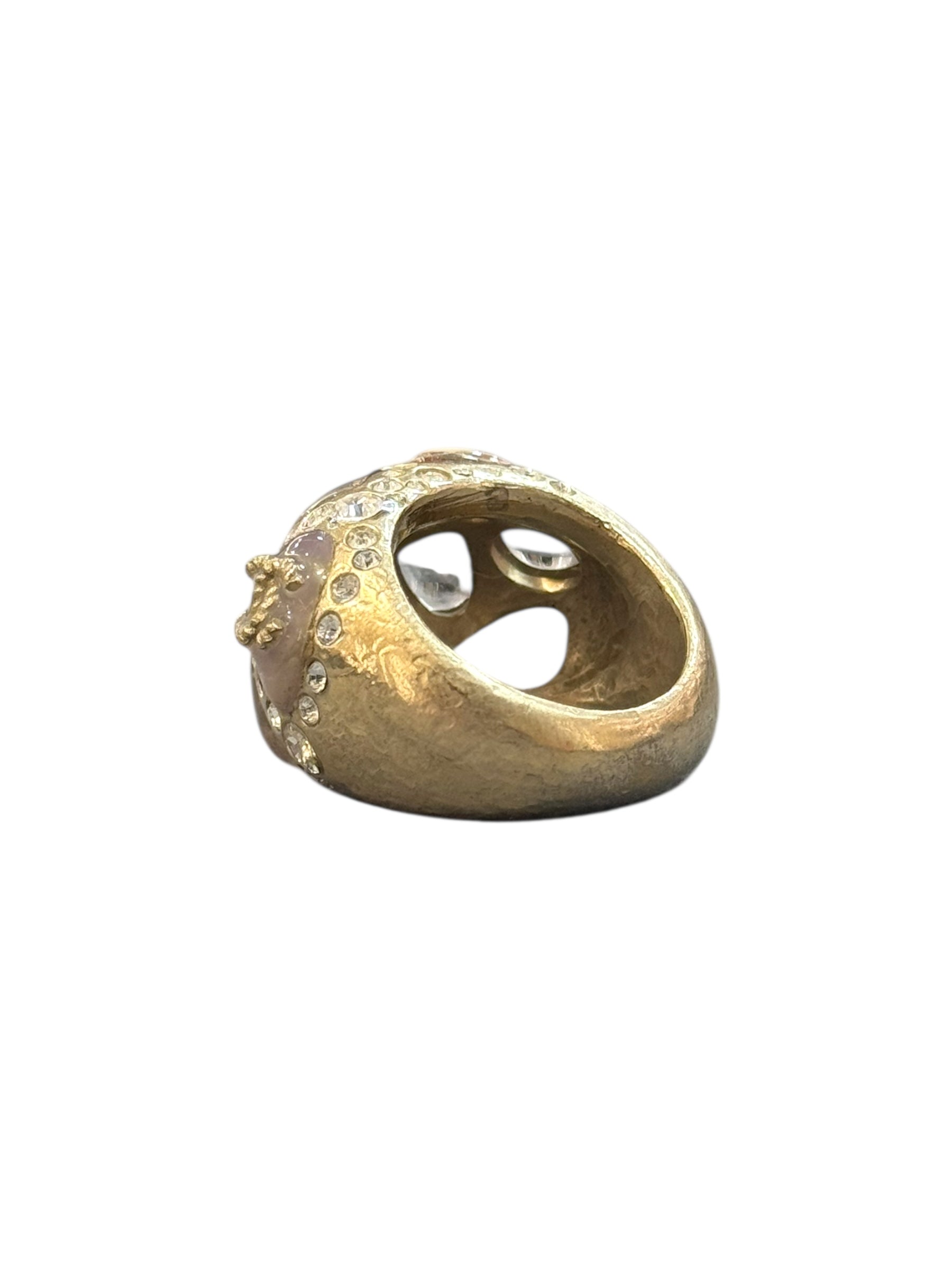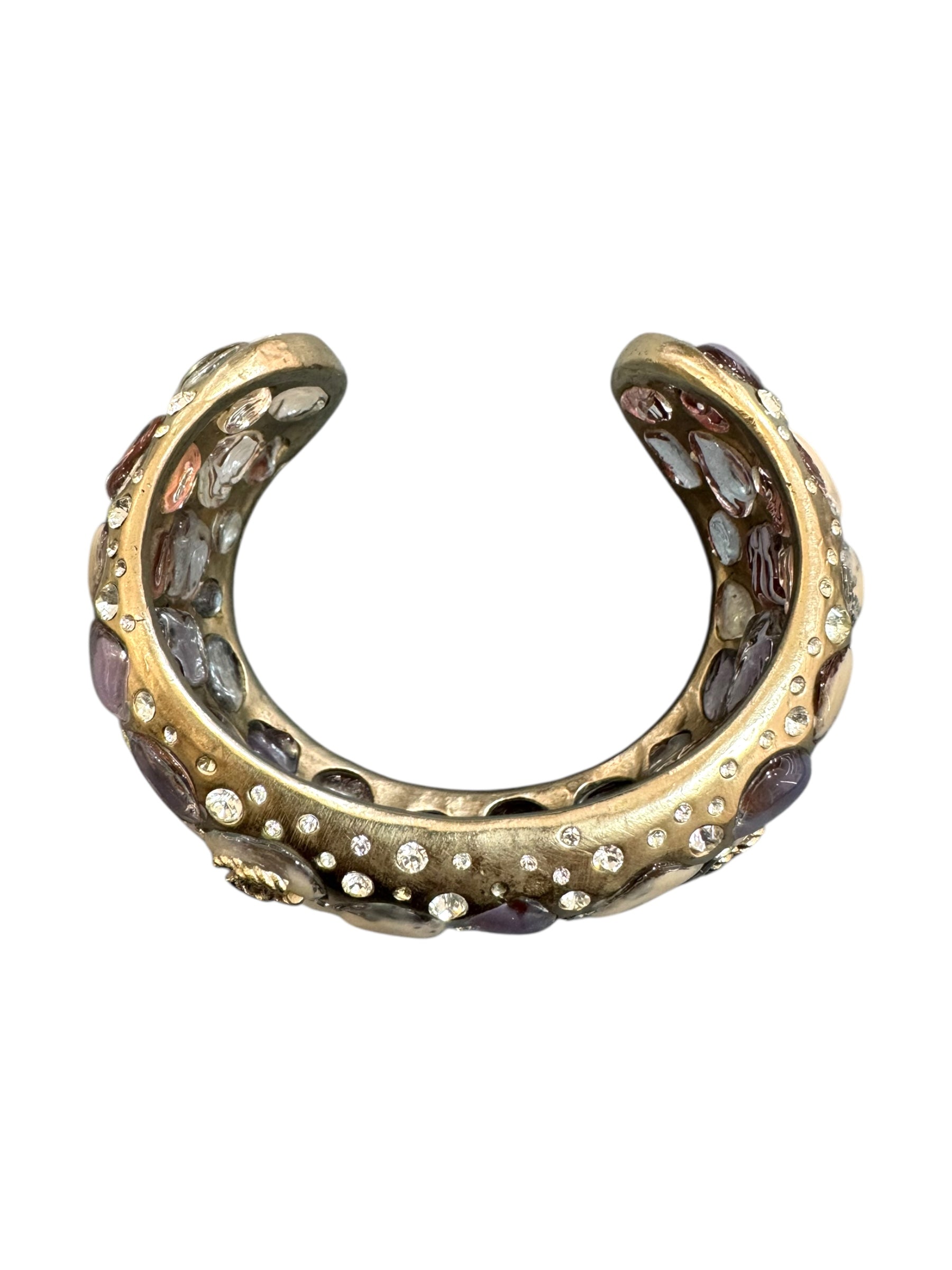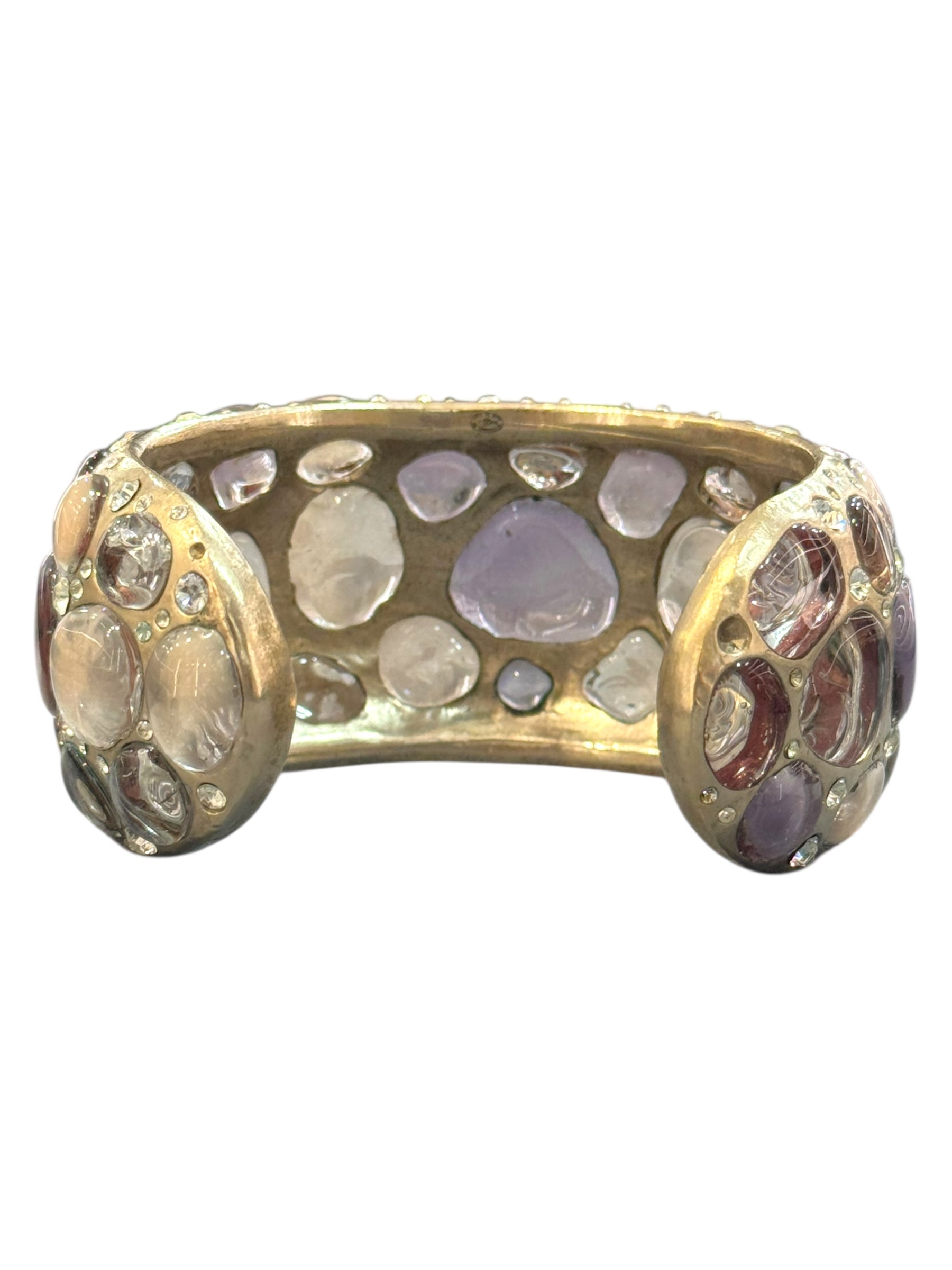Chanel Lavender & Ivory Cabochon Crystal Cuff Bracelet And Ring Set