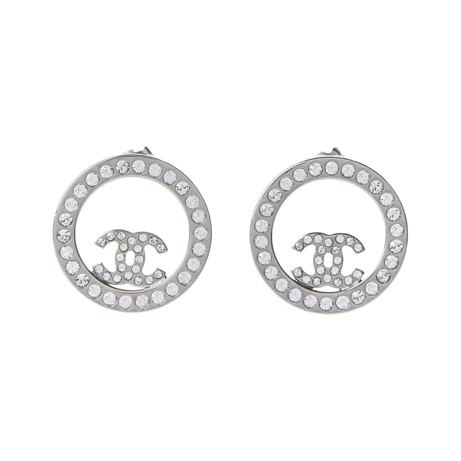 At the center of each earring sits the iconic interlocking CC logo, framed within the round crystal border for a bold yet refined statement. Finished with post-back fastenings for pierced ears, they are lightweight, versatile, and perfect for both day-to-evening wear.