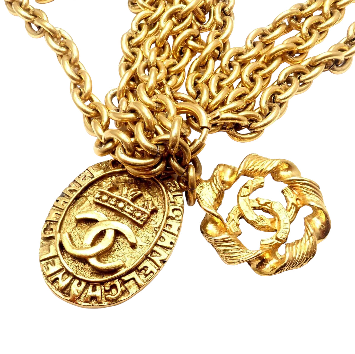 Chanel Gold Tone 3 Row Draped Clasp Belt Necklace